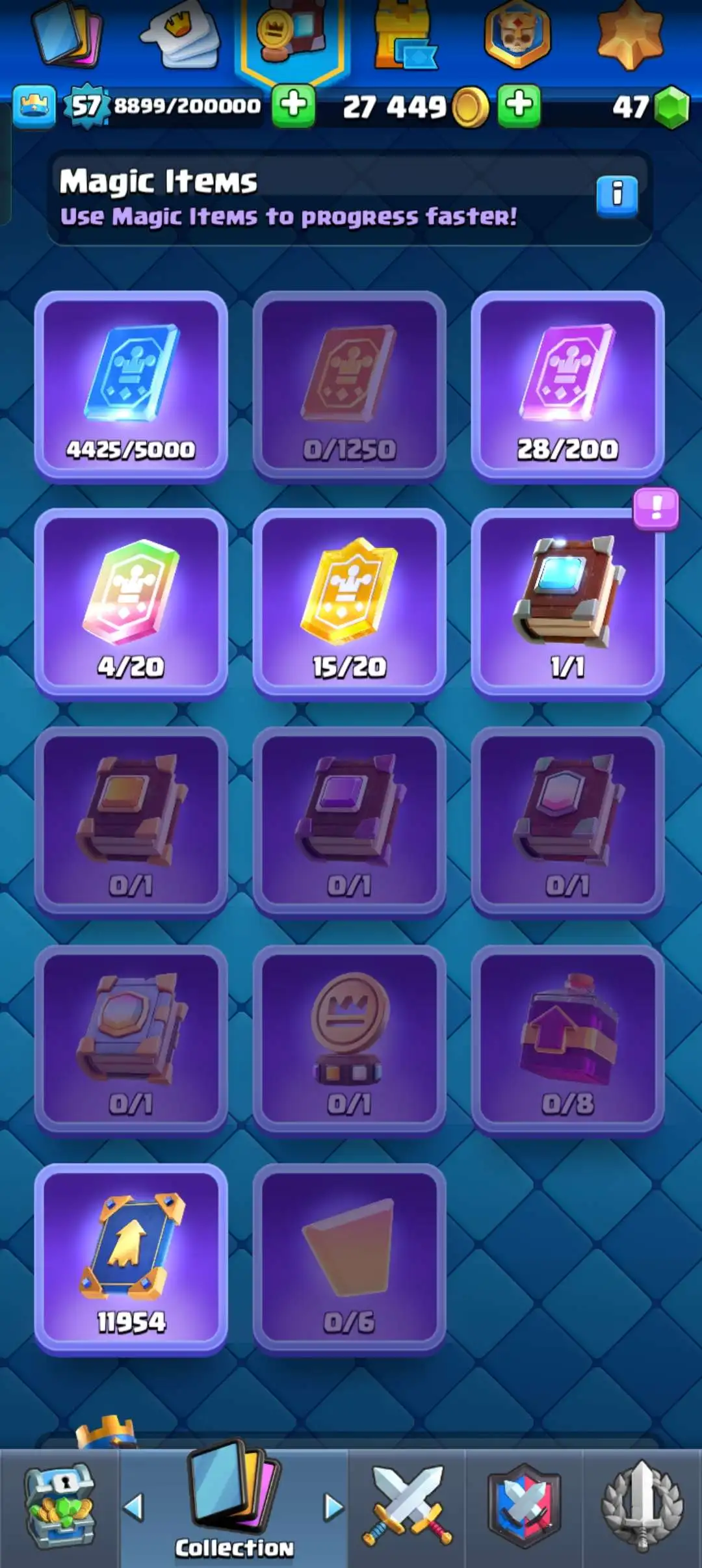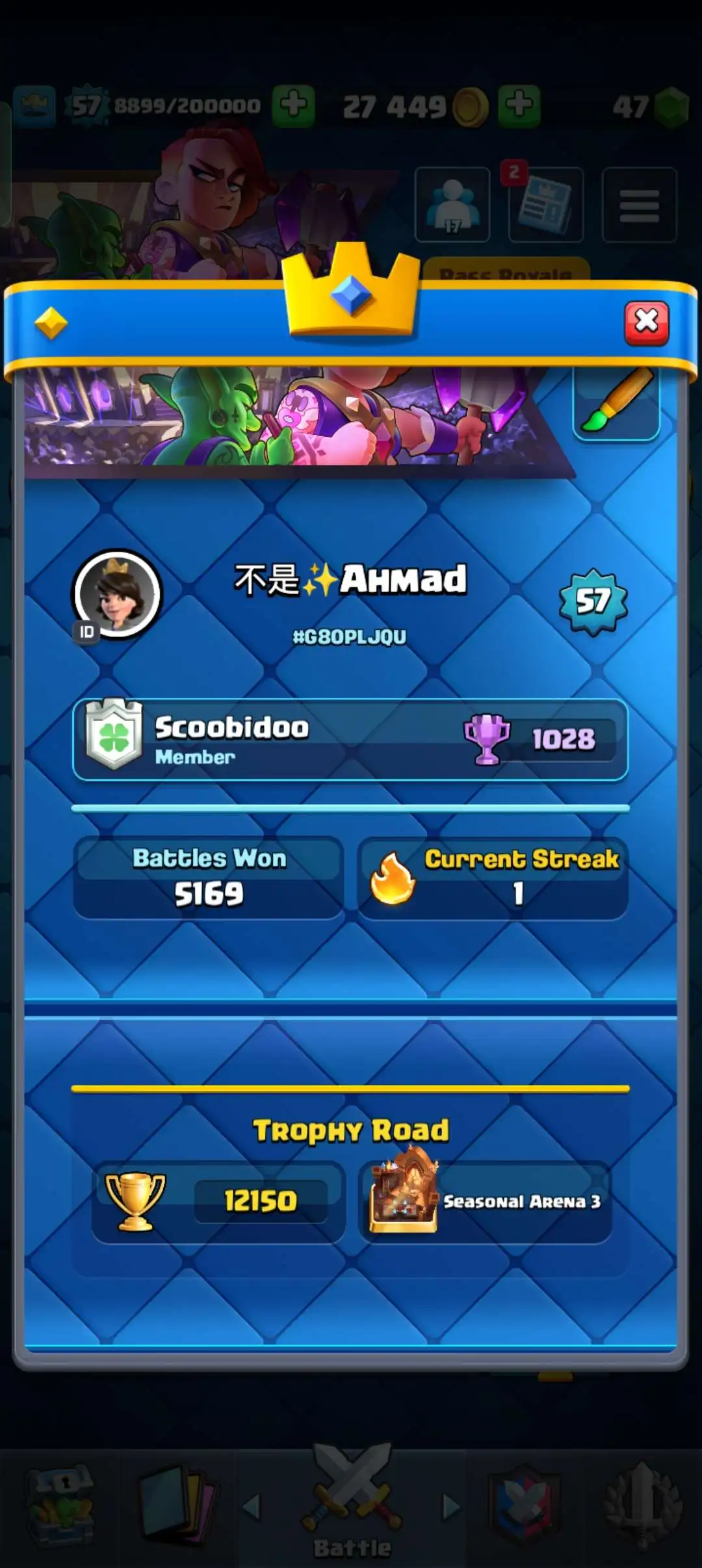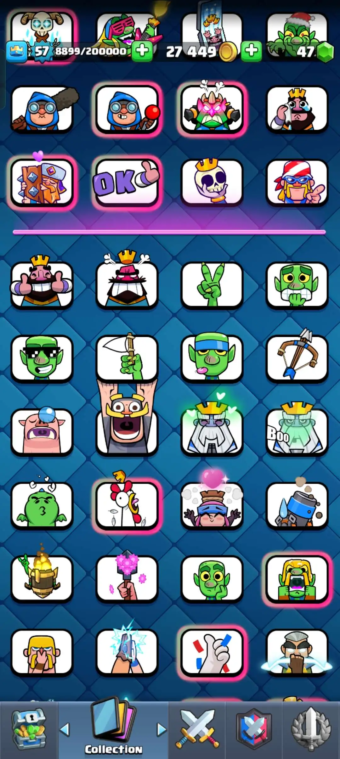 CR Lvl 57 ✨ 12150 Trophy ✨ 9 years badge ✨ KT 15 ✨ 13 Elite Cards ✨ 37 Max Cards ✨ 15 Evo Cards ✨ 85 Emotes ✨ 9 tower skins