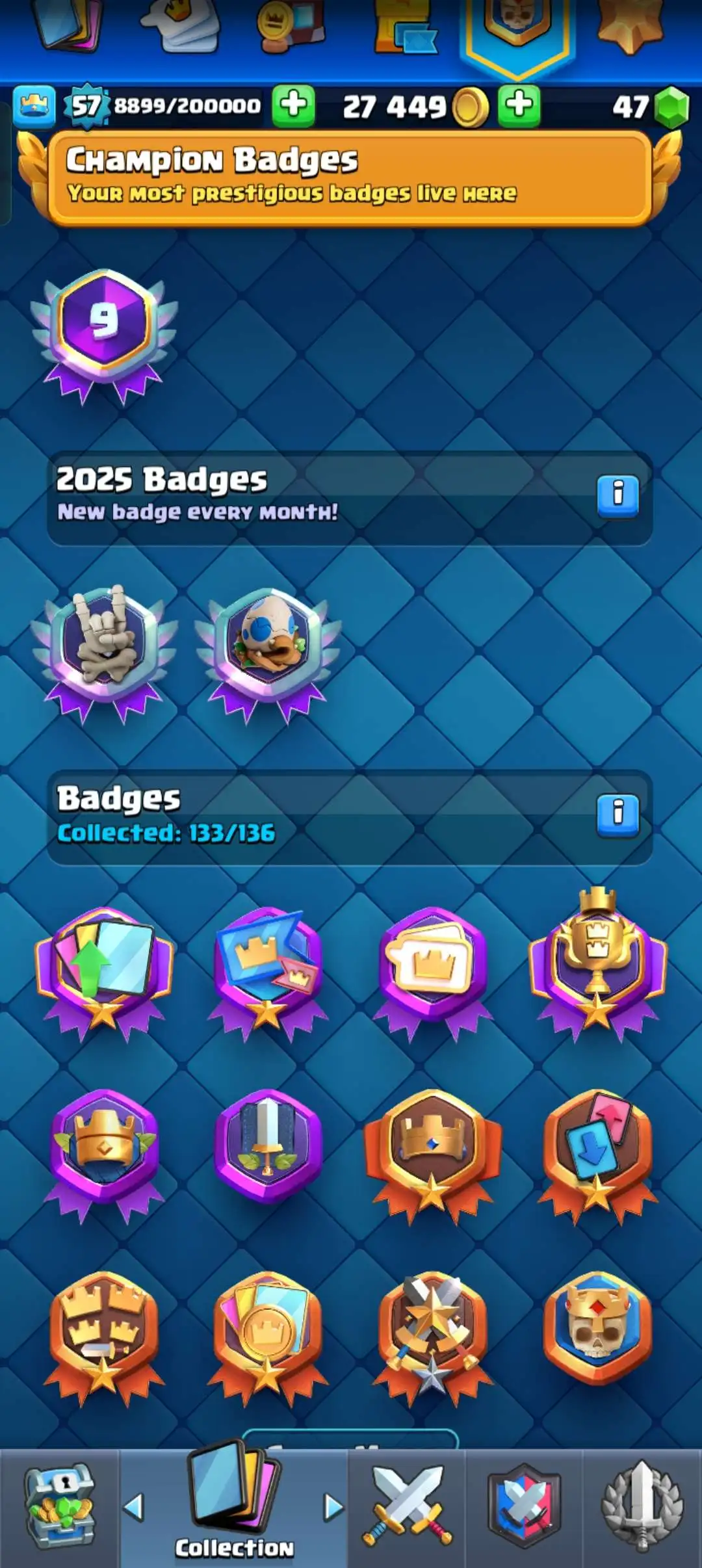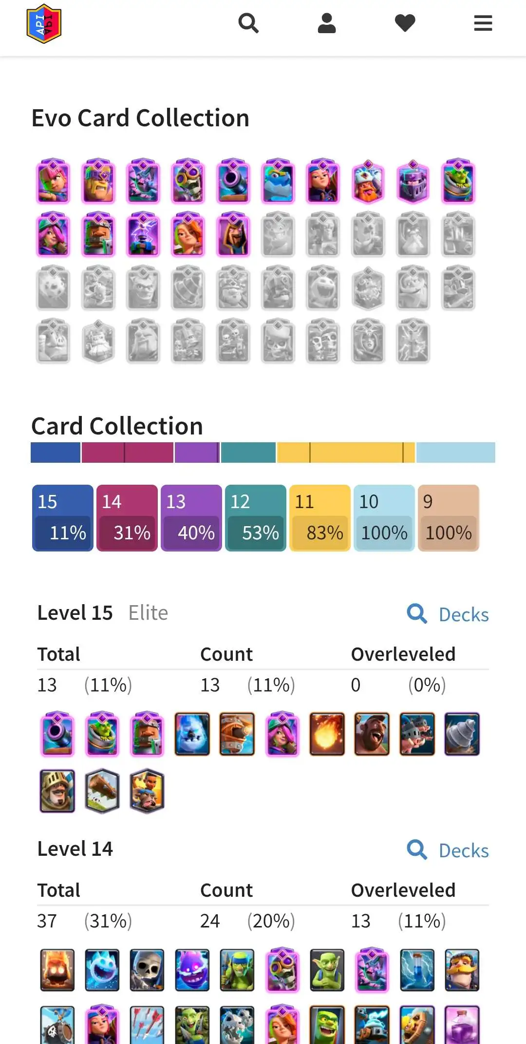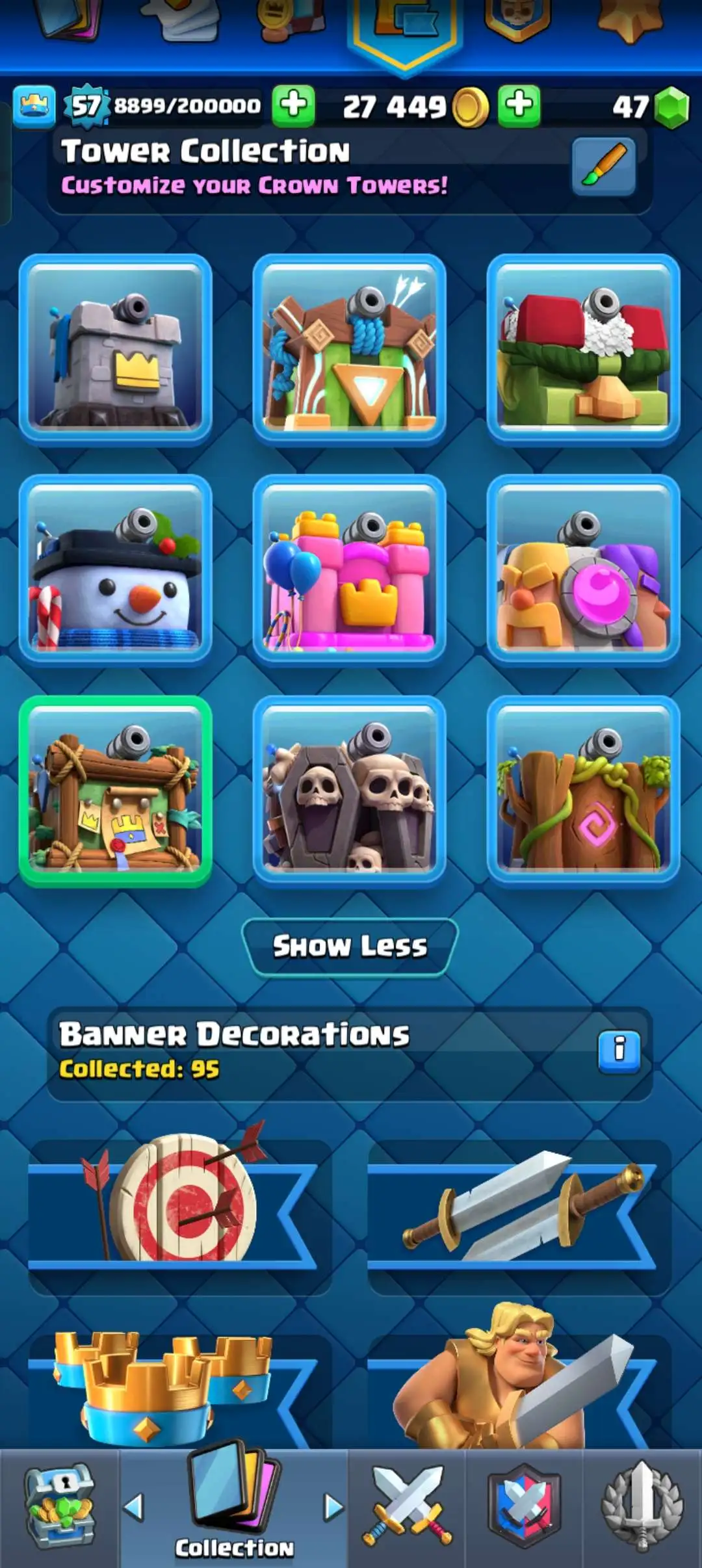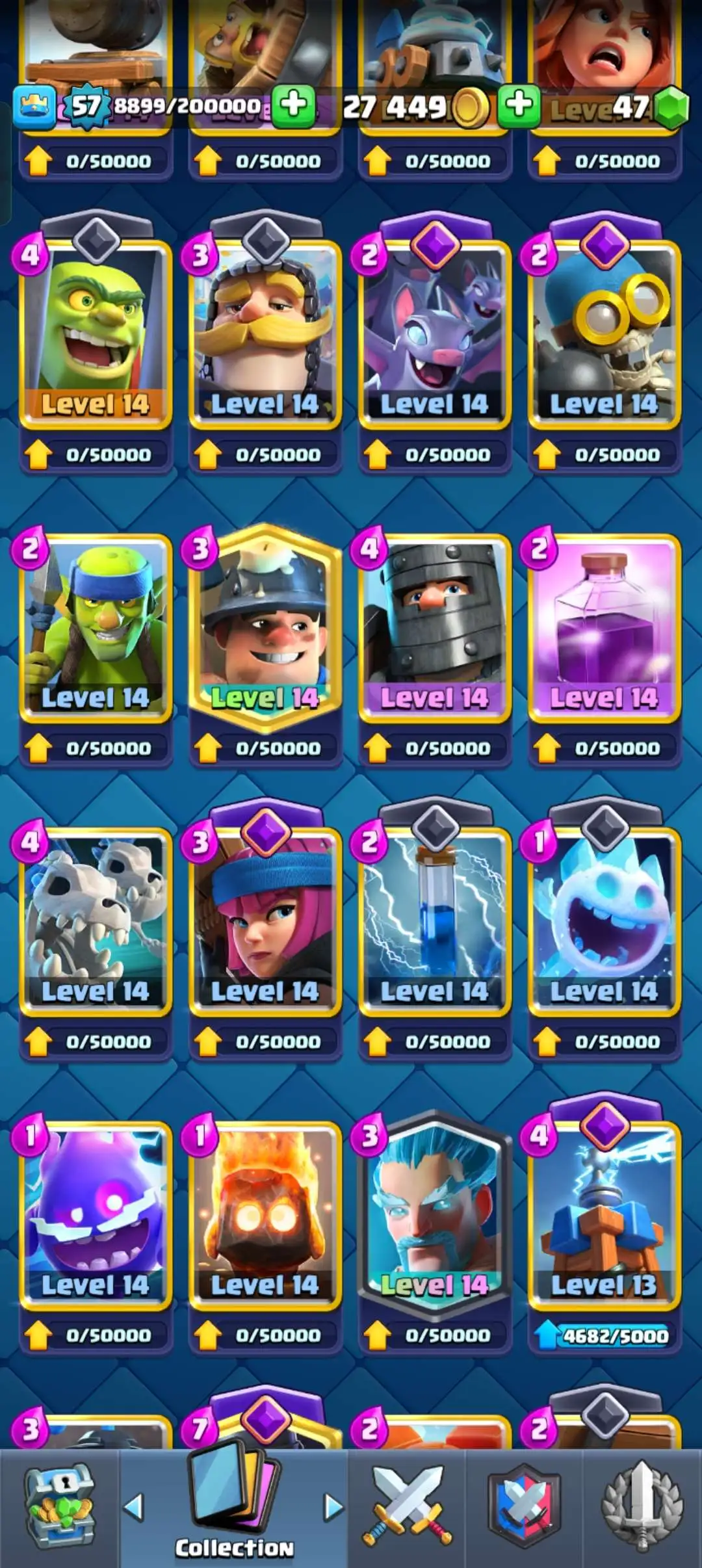 CR Lvl 57 ✨ 12150 Trophy ✨ 9 years badge ✨ KT 15 ✨ 13 Elite Cards ✨ 37 Max Cards ✨ 15 Evo Cards ✨ 85 Emotes ✨ 9 tower skins