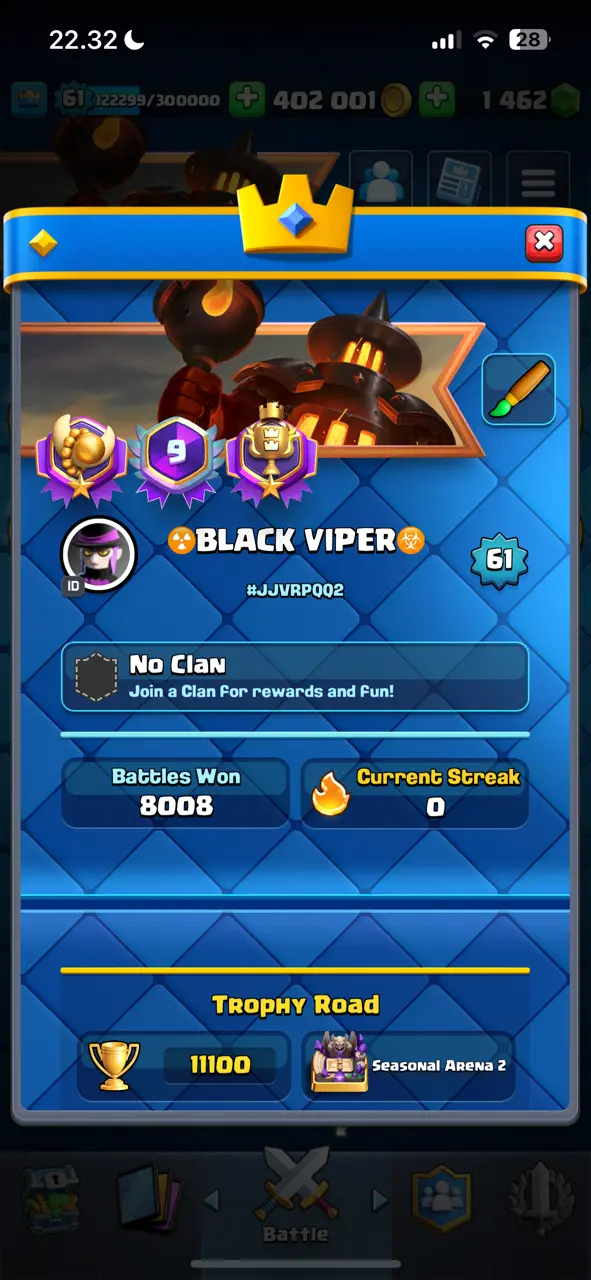 🔥 Goblin Kissing Emote 🔥 CR Lv.61 🔥 9 Years Played 🔥 Seasonal Arena 2 🔥 11100 Trophies 🔥 KT 15 🔥 21 Evo Cards 🔥 109 Max Cards & 28 Elites 🔥 175 Emotes 🔥 12 Tower Skins 🔥 [F2673] 🔥