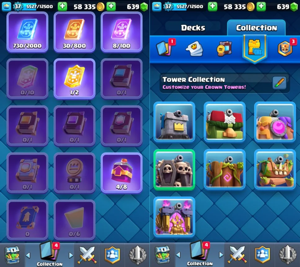 👑 KT 12 👑 7755 Trophy 👑 37 LVL 👑 115 Cards 👑 22 Emotes 👑 639 Gems 👑 58 k Gold 👑 + Clash of Clans TH 8 👑