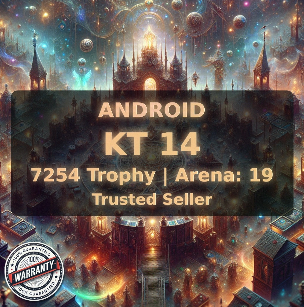 KT 14 LEVEL 53+Trophies:7254+4 Evolution+118 Cards+4 Cards (MAX) + 14 Cards (14LVL)+5 Tower Skins+42 Emotes+1.4KK Gold+7540 Gems+IOS/ANDROID #ID-166339