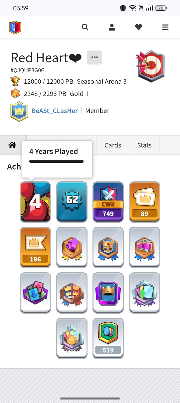 ✨KT (15)🔥12K + TROPHIES 🥰62 XP 🥳121 CARDS 💥 17 EVOLUTION CARDS 🃏 32 ELITE CARDS✨ 74 MAX CARD ♦️⚡89 EMOTE🥳INSTANT DELIVERY 🚚CL2