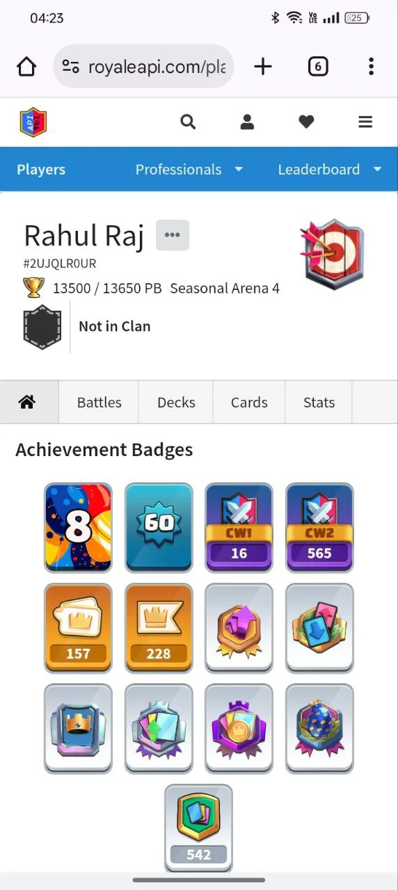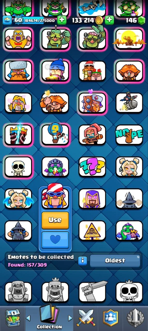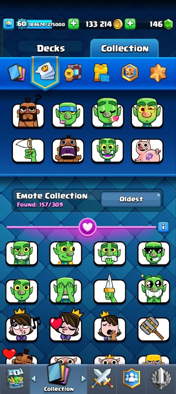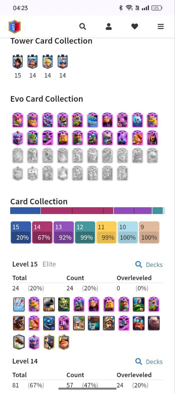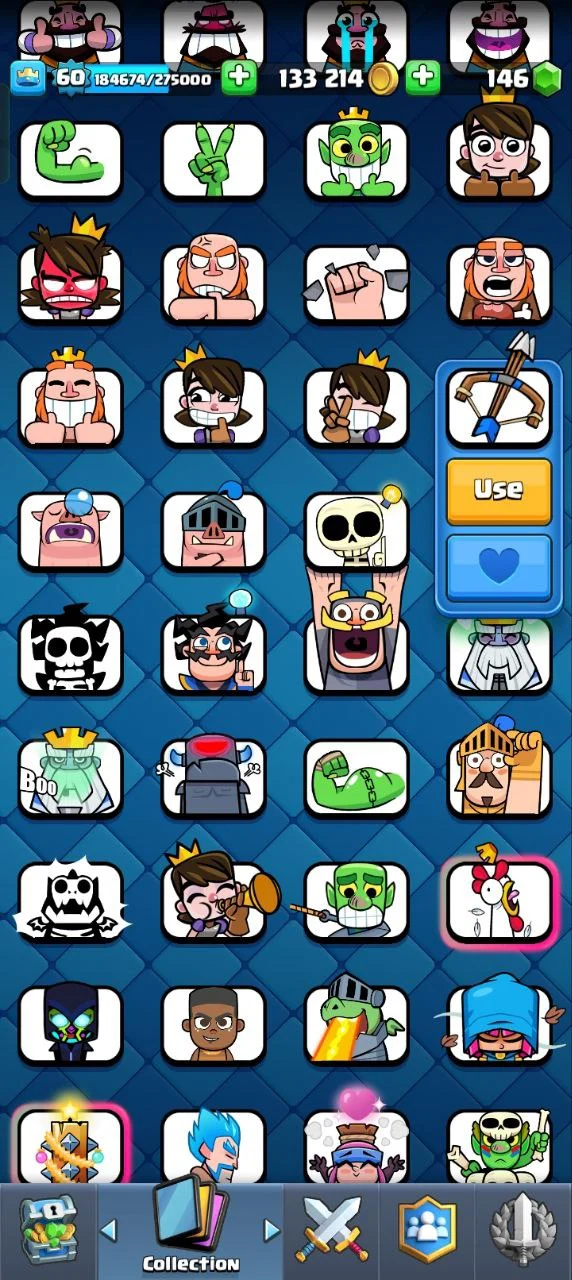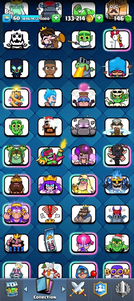 ✨KT (15)🔥13.5K+ TROPHIES 🥰60 XP 🥳121 CARDS 💥 20 EVOLUTION CARDS 🃏 24 ELITE CARDS✨ 81 MAX CARD ♦️⚡157 EMOTE🥳INSTANT DELIVERY 🚚CL5