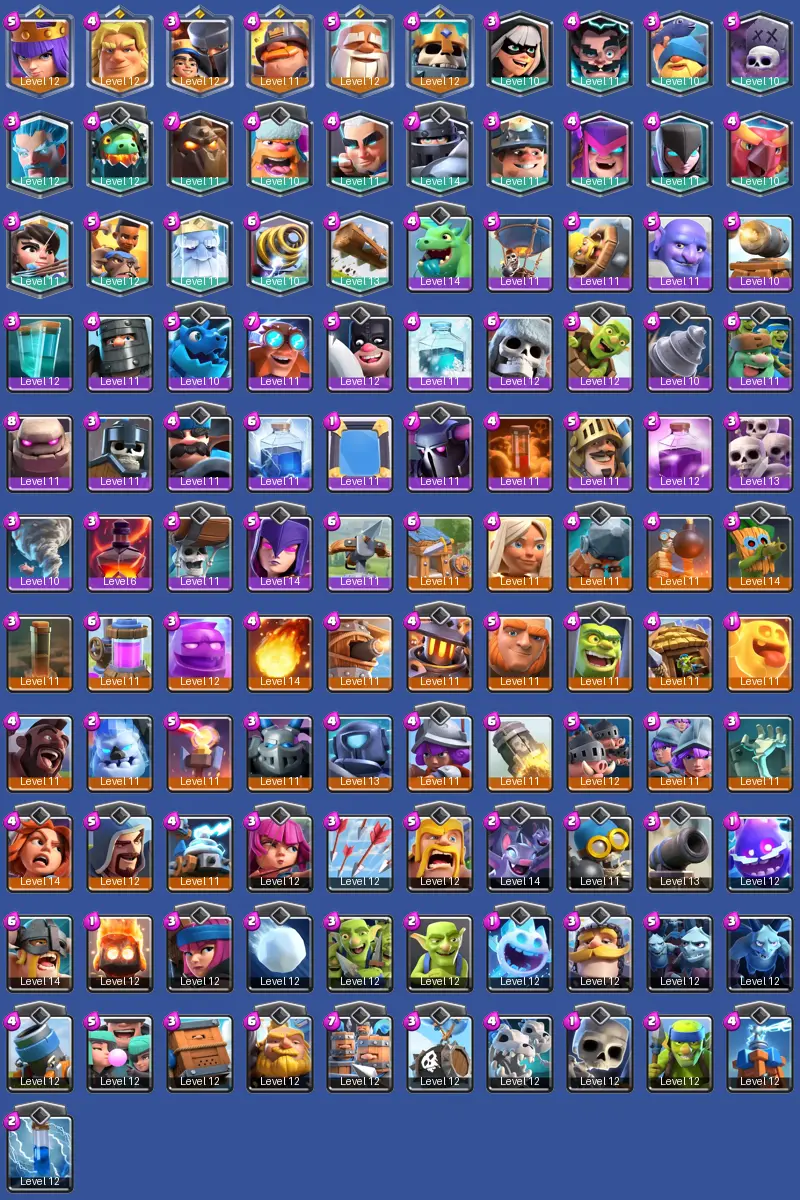 [KT14] | Level 43 | 7000 Trophies | Arena 19 | 111/125 Cards | 2072 Wins | 8 Max | 6 Champions | 18 Legendary | 28 Epic | Full Access | S4G