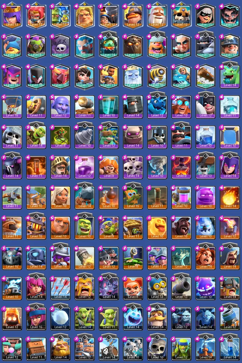 [KT15] | Level 55 | 9180 Trophies | Arena 23 | 120/125 Cards | 4423 Wins | CoC TH13 | 8 Elite | 28 Max | 8 Champions | 17 Legendary | S4G