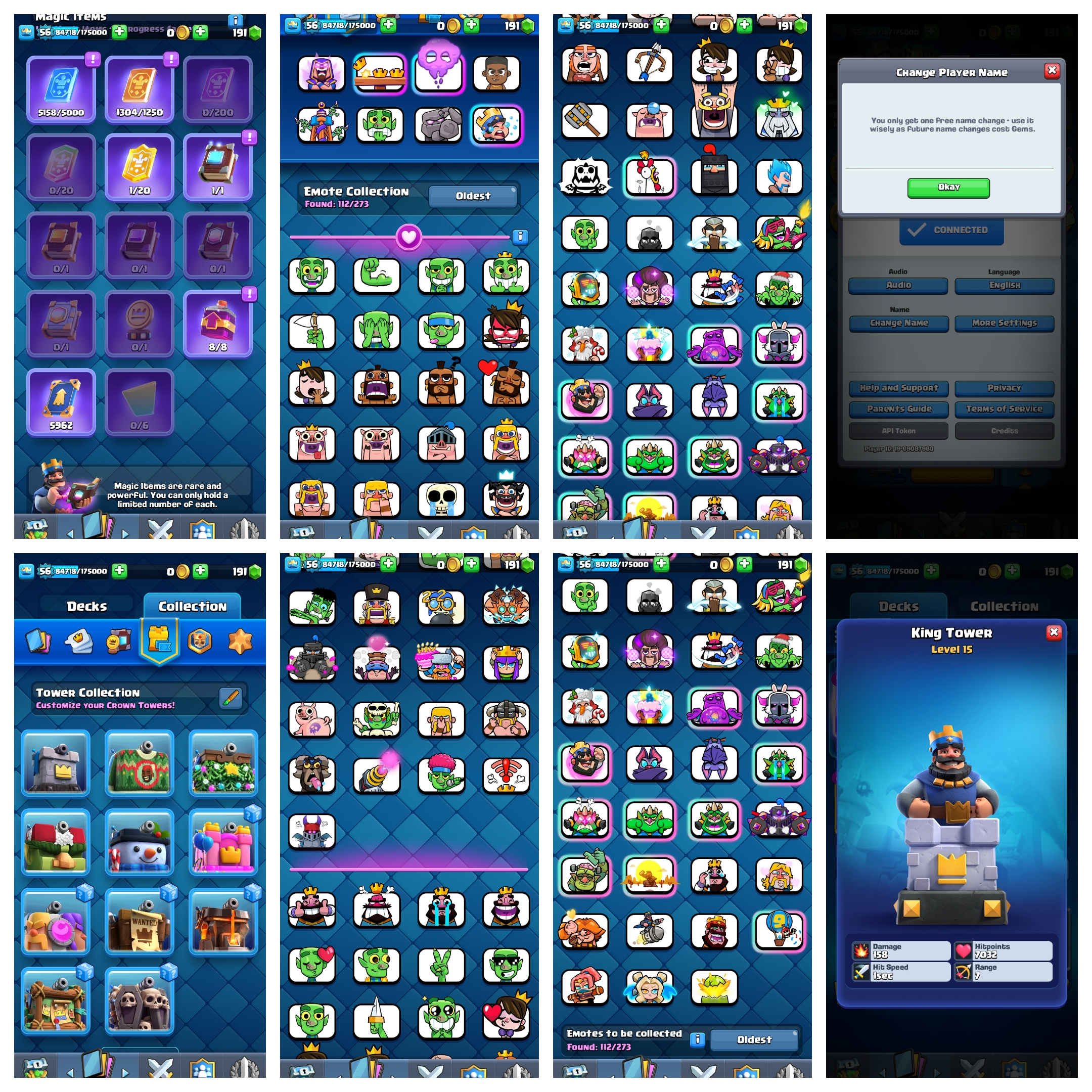 LEVEL 56 [] KT 15 [] 9400 TROPHIES [] 46 MAX CARDS [] 10 ELITES [] 19 EVOLUTION CARD [] 112 EMOTE [] INSTANT DELIVERY