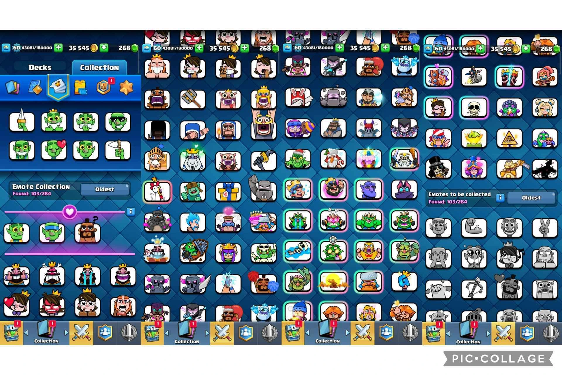 Level[60]-Exclusive Evolution[17x]-Hero card [1x]-Level14[52x]-Level15[x16]- unlocked card[116x]-Kt15-Kt Skin[7x]-Cool Emote[103x-Trophy[10000]