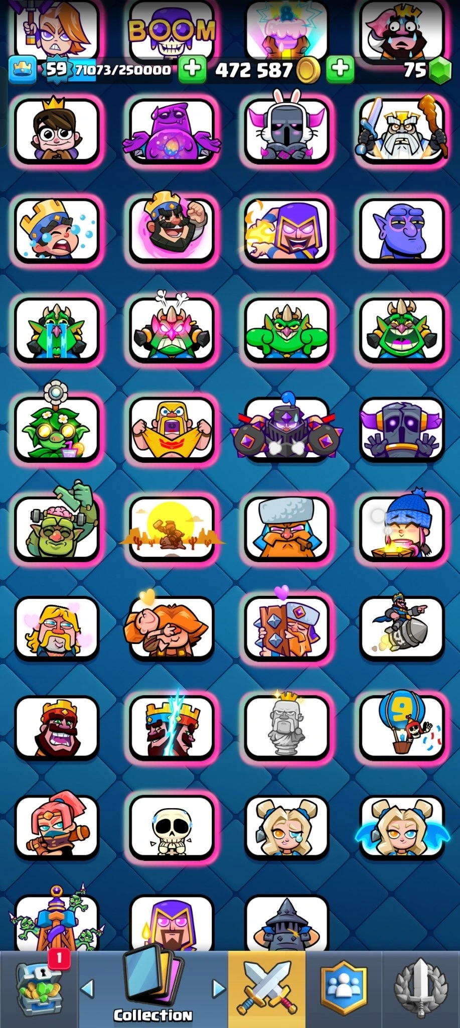 🔥 [PREMIUM] 🔥RARE EMOTES🔥 12000 TROPHYS 🔥 18 EVO CARDS 🔥17 ELITE CARDS 🔥82 MAX CARDS 🔥 97 EMOTES 🔥XP (59)🔥KT (15) 🔥 472587 GOLD 🔥 75 GEMS 🔥 INSTANT DELIVERY 🚚