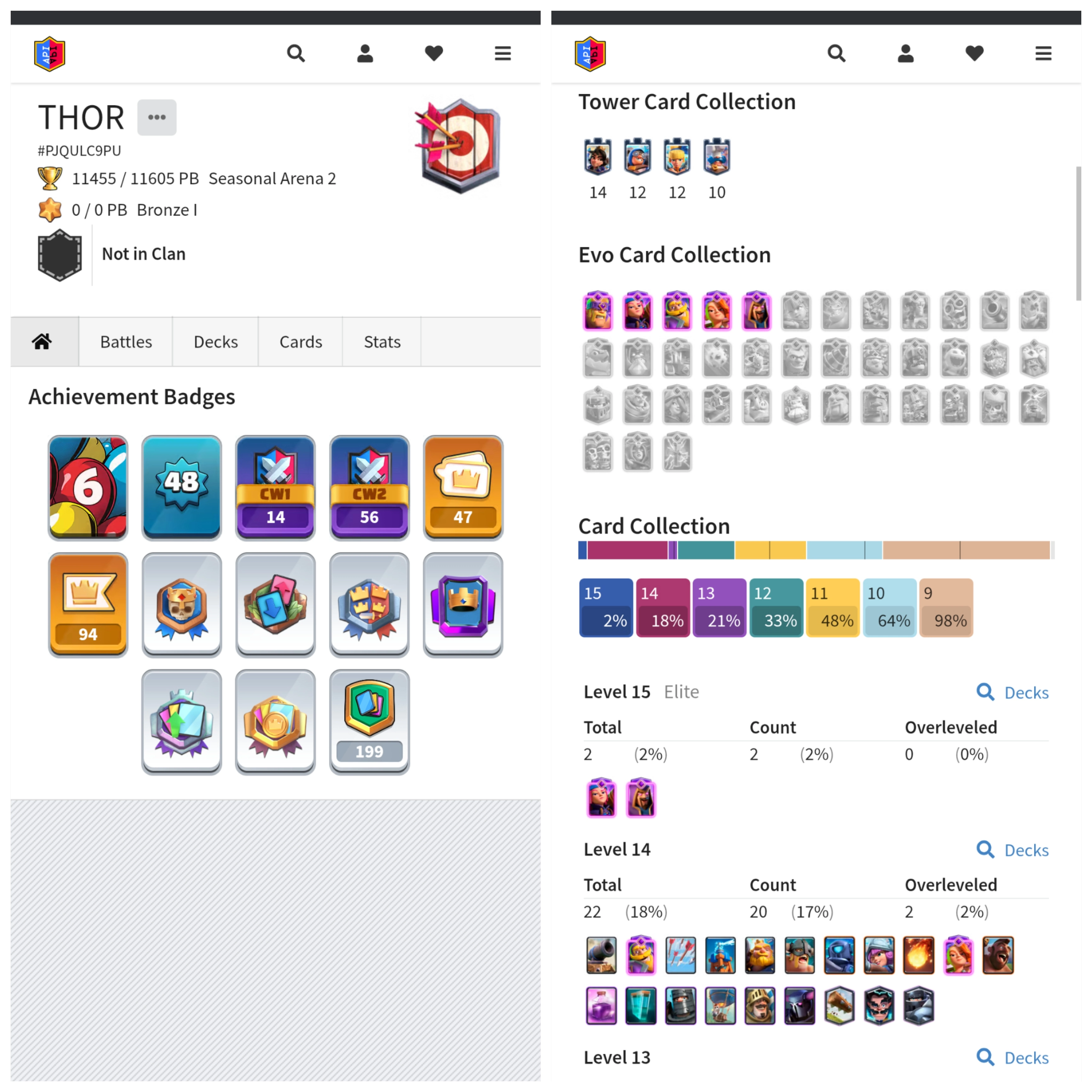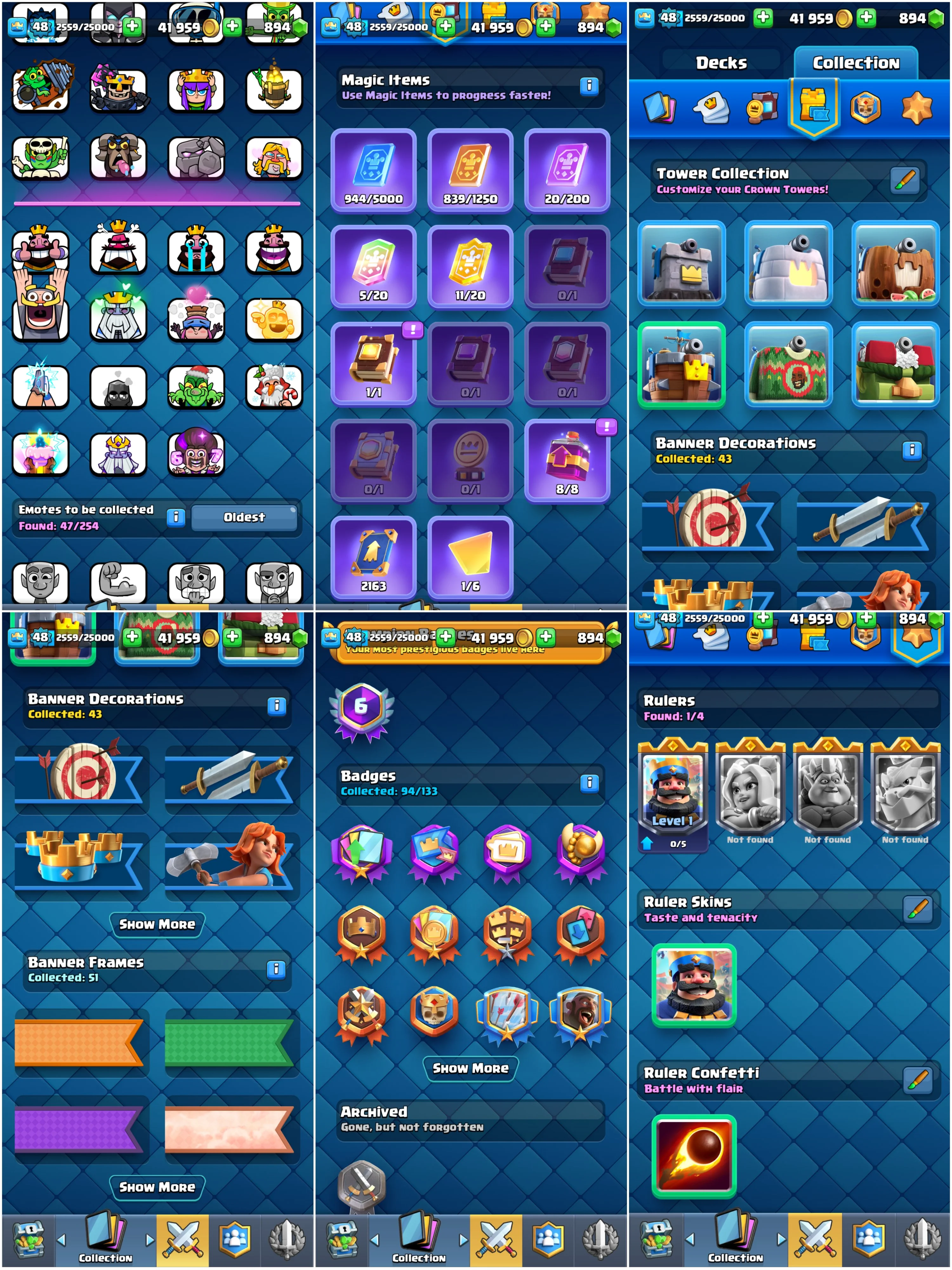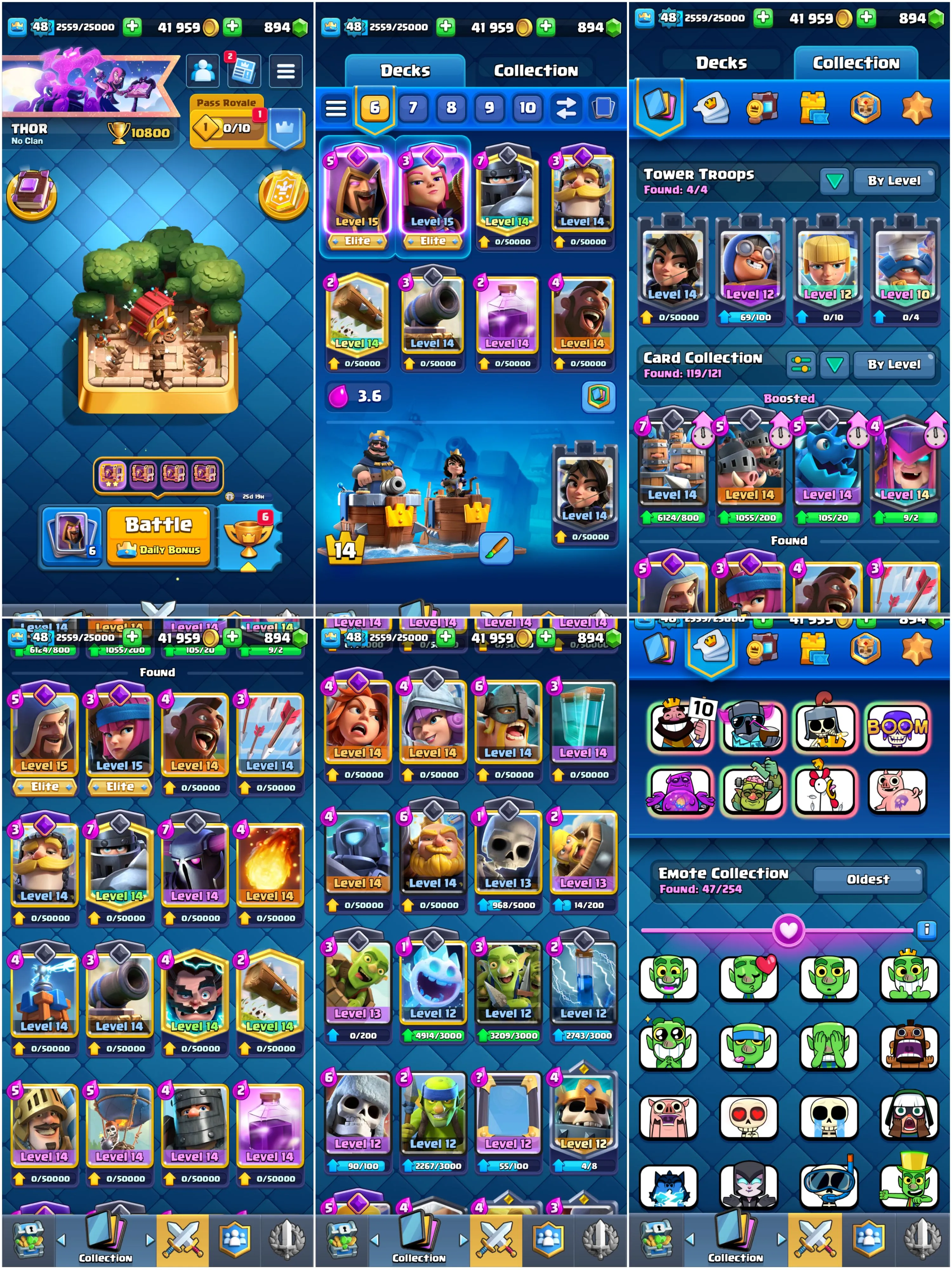 💥 Rare 6 Years Played Badge 🌟 Level 48 💎 KT 14 🏆 10800 Trophies ⚔️ 22 Max Cards {2 Elites} 💫 5 Evos 🎭 47 Emotes 🎨 6 Tower Skins 🚀 Instant Delivery