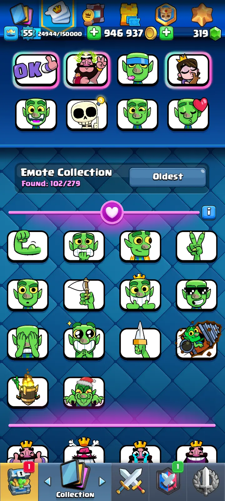 RARE EMPEROR KING 🔥 LVL 55 🏆 10.7K+ TROPHIES 👾 14 EVOS [ 2 SHARDS ] ☠ 28 MAX CARDS [ 9 ELITES + 35K ELITE CARDS ] 😍 100+ PREMIUM EMOTES [ GOBLIN KISS EMOTE ⸱ PRINCESS KISS EMOTE ] 🤝 SAFEST AND INSTANT DELIVERY!