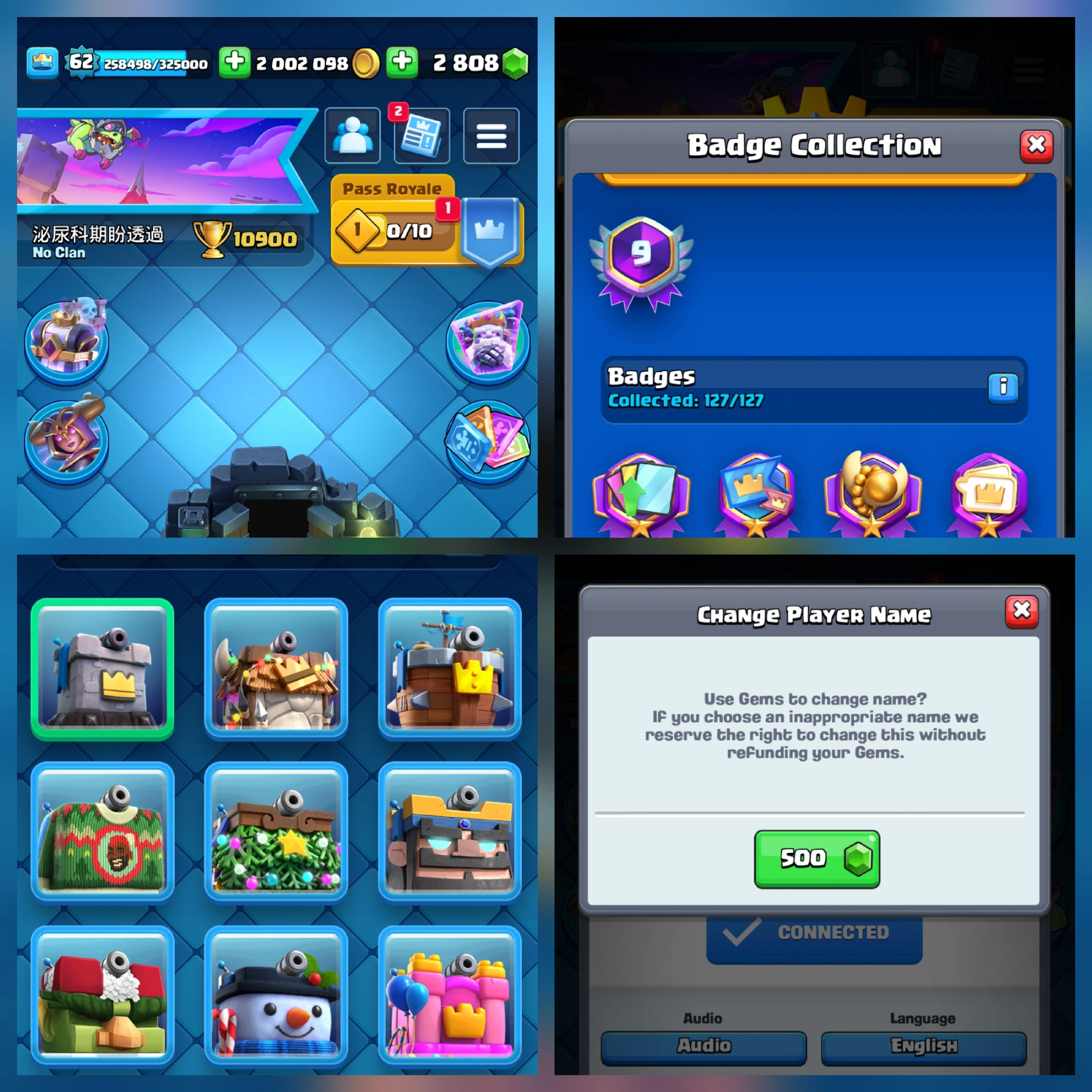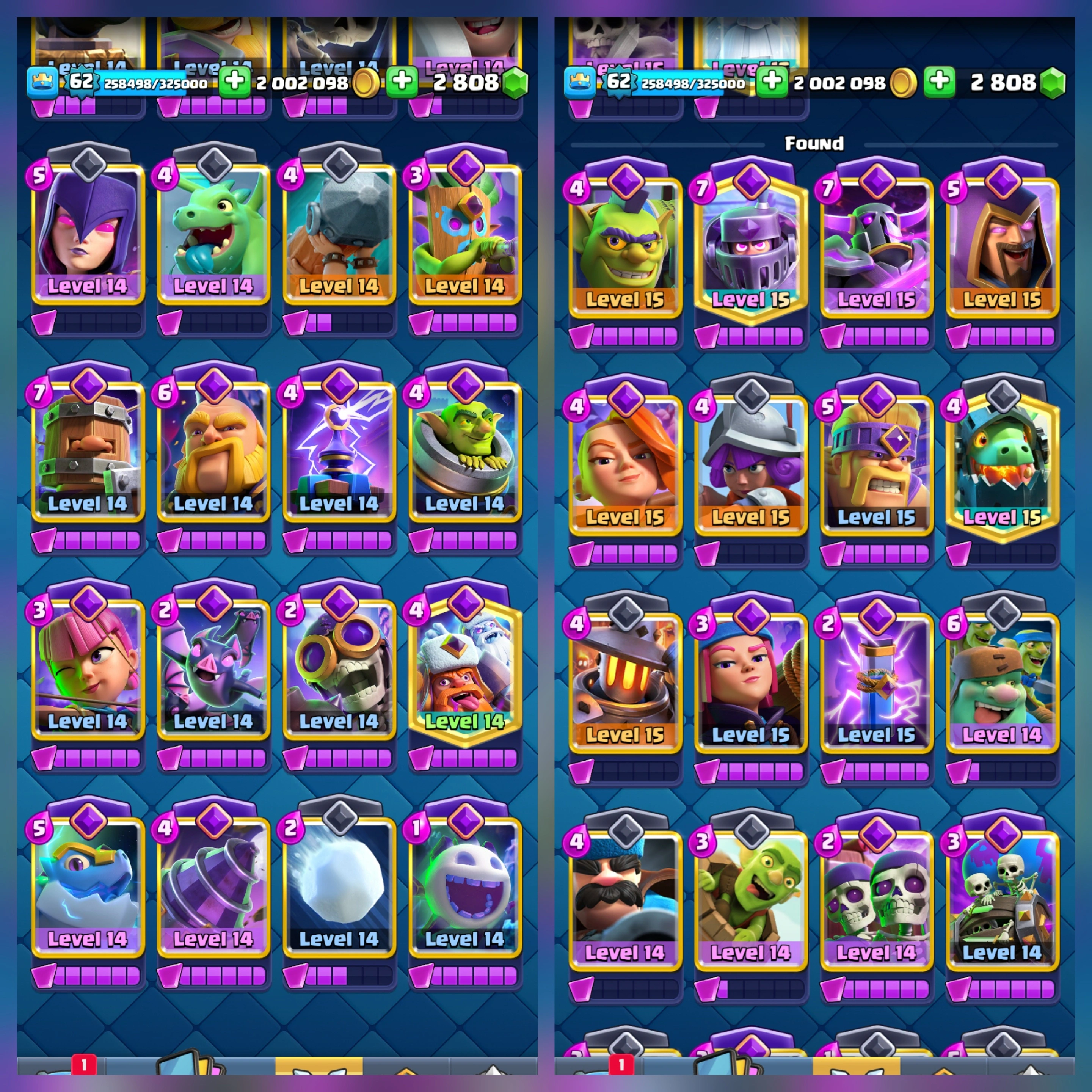 Super rare 100% full max 62 xp💥💥 11000 trophy 💲 23 evolution card 💲 29 elite wild card ■ 114 card full max ■ 181 emote■ 20 Milion gold ■ nc 500 gems