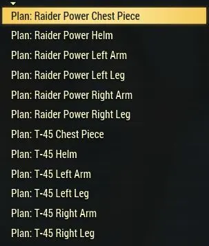 [ PC ] Power Armor Plans: Raider Power, T-45, T-60, T-51B (Total 24 Plans) (instant delivery)