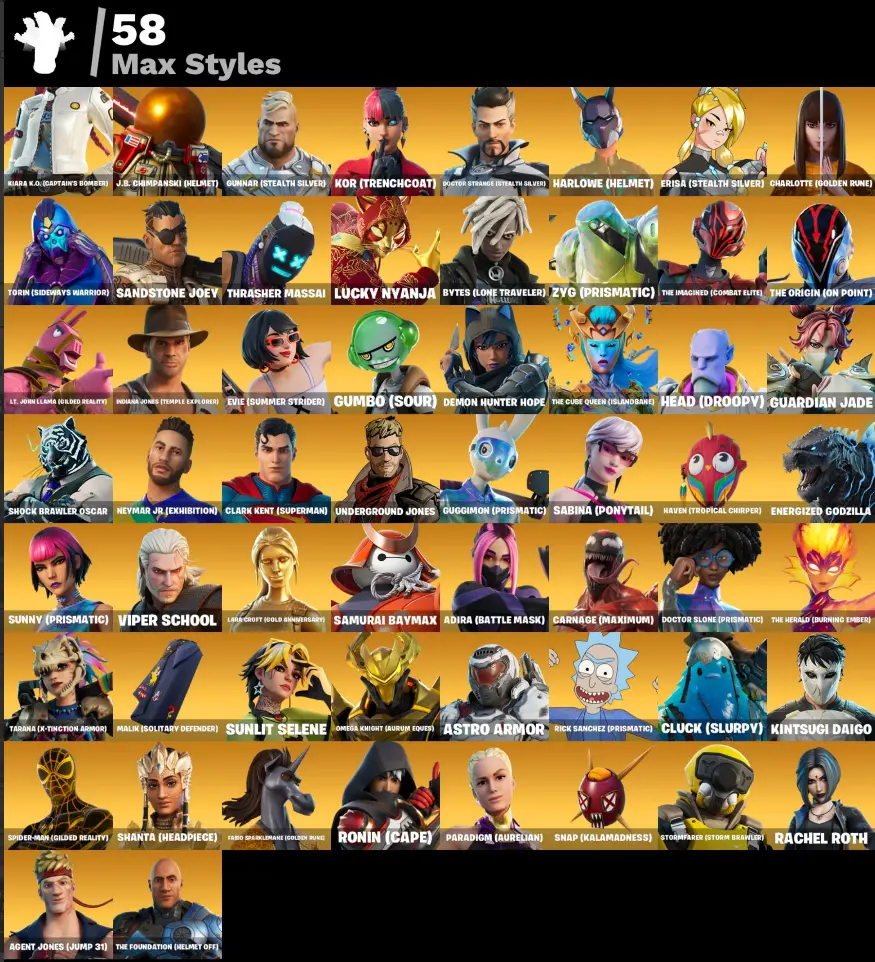 100 skins | Malik | The Imagined | Joey | Driftwalker | Nezumi | Peter Griffin | Spire Assassin | The Origin | Kymera | Son Gohan | Raz |