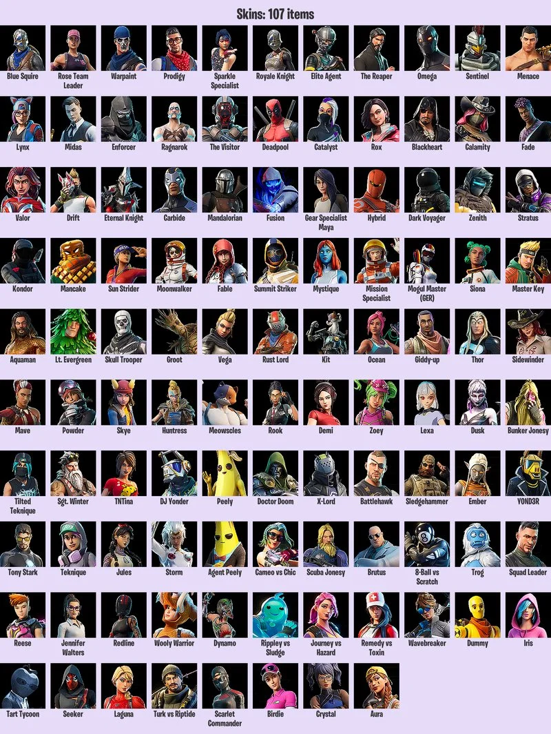 107 Skins|OG STW|Sparkle Specialist|Blue Squire|Rose Team Leader|Warpaint|Prodigy|Royale Knight|Elite Agent|The Reaper|Omega|Sentinel