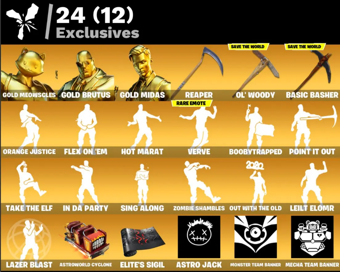 127 SKINS ⸱ For all platforms, Gold Meowscles | Gold Brutus | Gold Midas | Ice King Gold | Luxe Gold | Lazer Blast | Flex On 'Em | Out With The Old | Point It Out | Orange Justice | Hot Marat | Catalyst