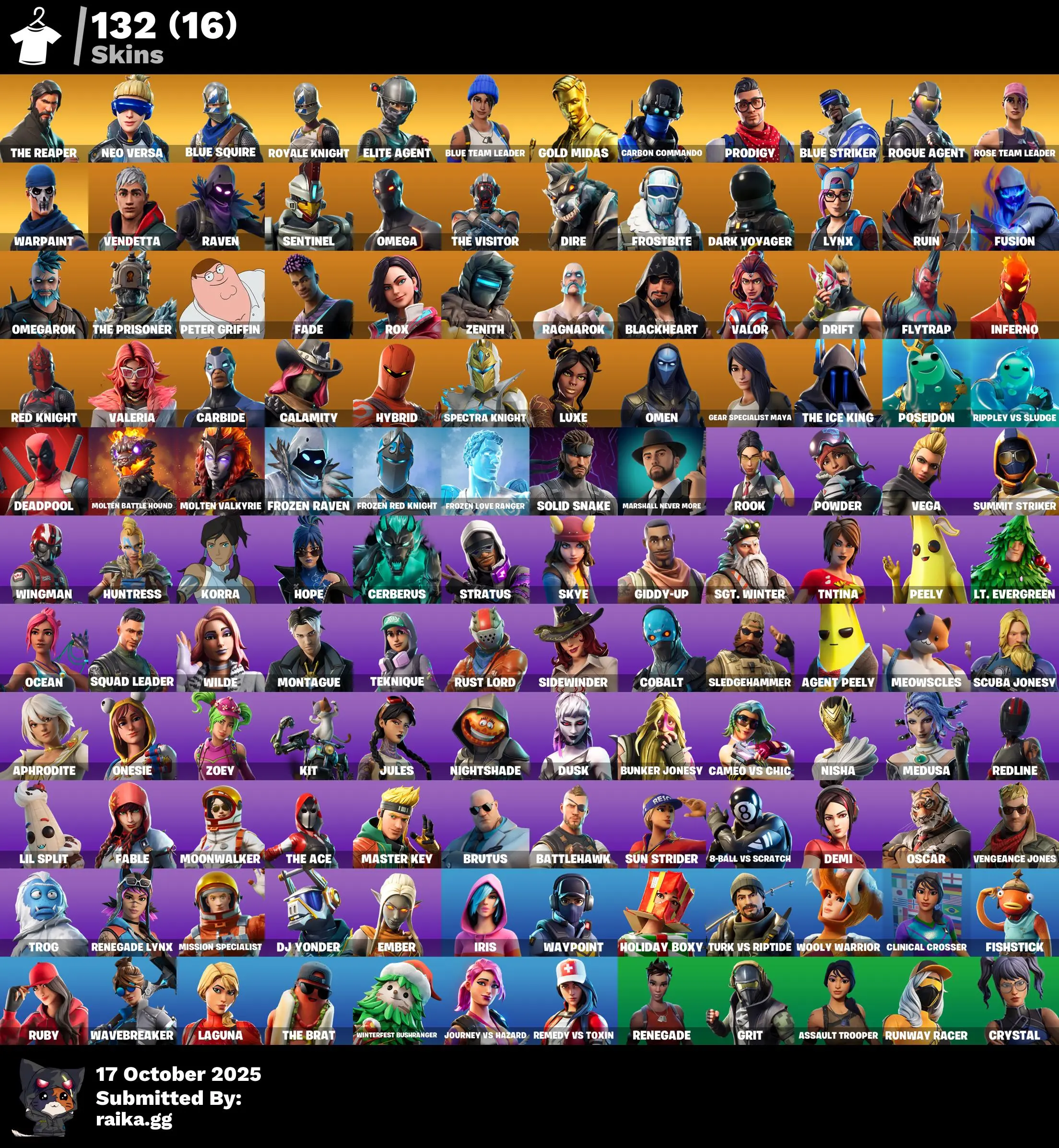 132 skins | The Reaper🐔Omega🐔Rogue Agent🐔Prodigy🐔Royale Knight🐔Gold Midas🐔Ruin🐔Neo Versa🐔Lynx🐔Dark Voyager🐔Dire🐔Elite Agent🐔Fusion🐔Sentinel🐔Blue Squire🐔Frostbite🐔Raven🐔The Visitor🐔Blue Striker🐔Blue Team Leader🐔OG STW🐔Vendetta D5126