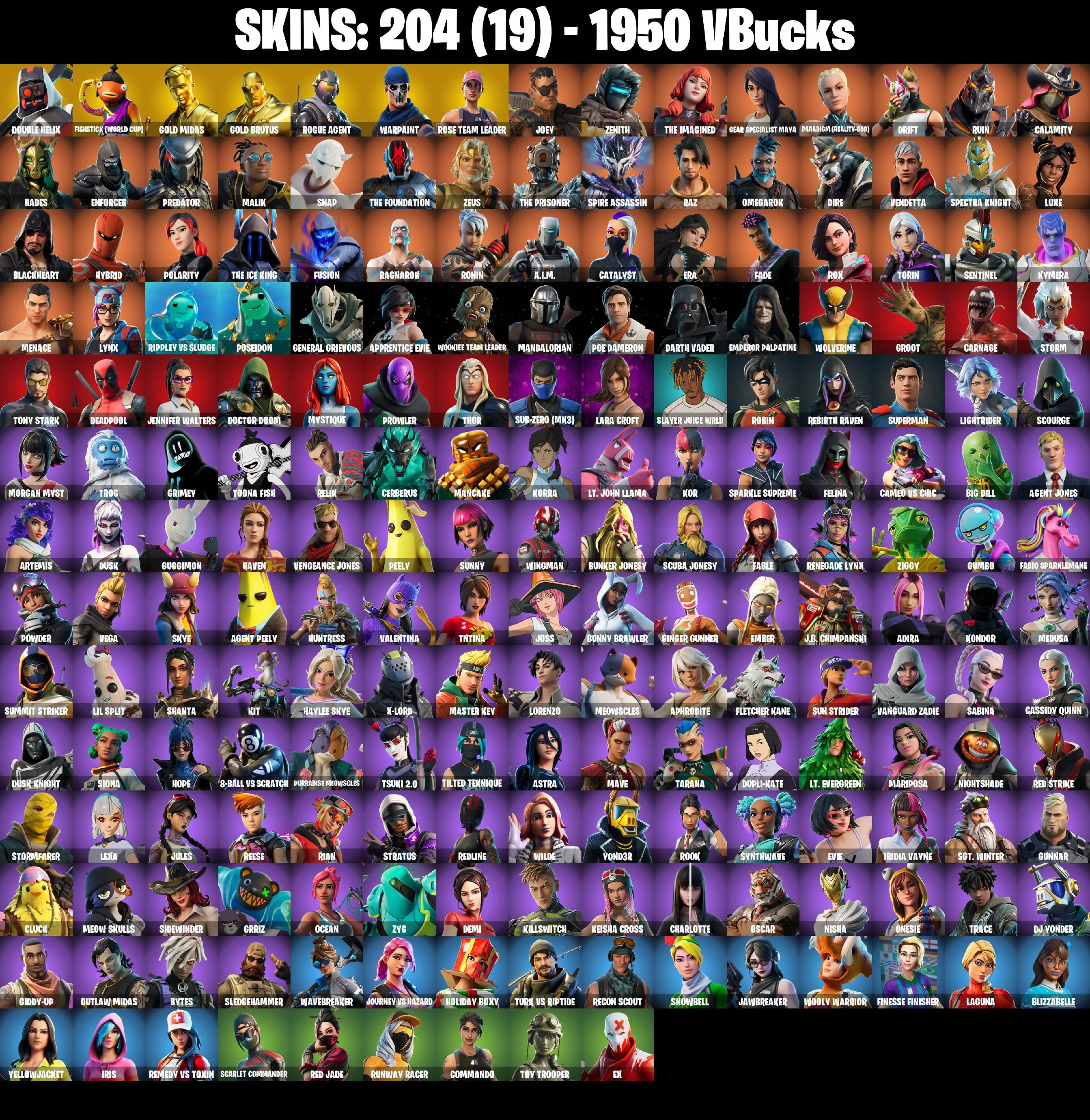🎆204 SKINS ⚡️PC/PSN⚡️ DOUBLE HELIX 👑 FISHSTICK (WORLD CUP) 👑 GOLD MIDAS 👑 GOLD BRUTUS 👑 ROGUE AGENT 👑 JOEY 👑 ZENITH 👑 THE IMAGINED ⚡️ 1950 VB #M573