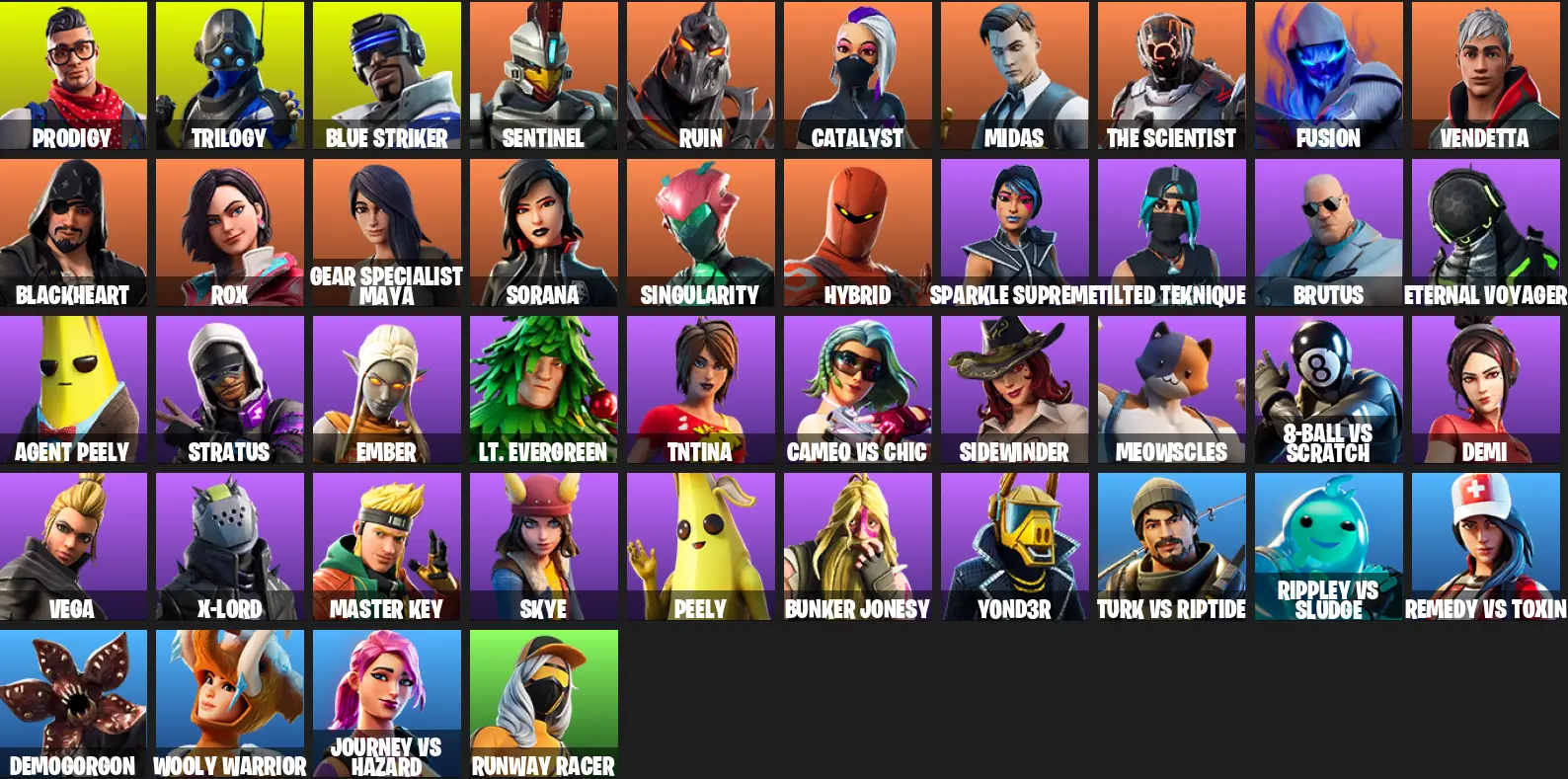 44 skins | Gold Midas | Trilogy | Blue Striker | Prodigy | Ruin | Sorana | Blackheart | Singularity | Gear Specialist Maya | Rox | Catalyst