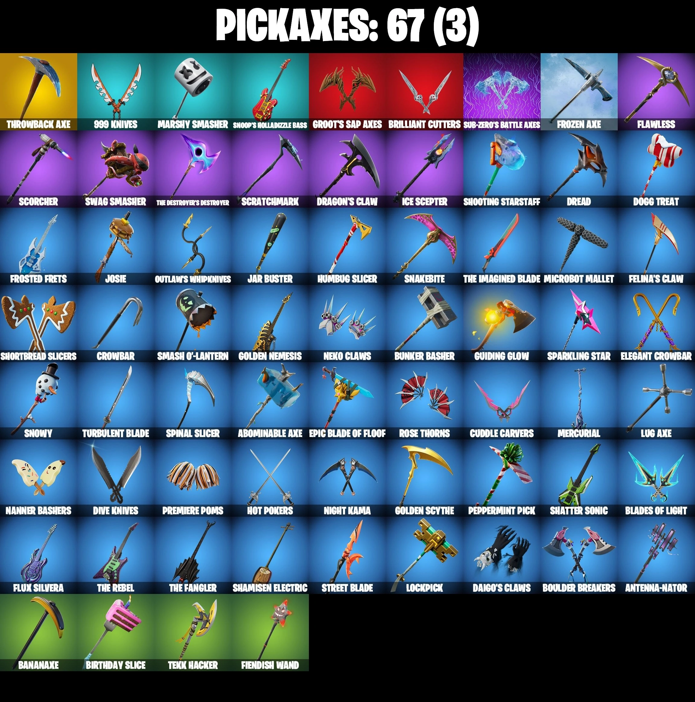 46 SKINS ⸱ GO MUFASA ⸱ KONG ⸱ ONESIE ⸱ EVERGREEN ⸱ MR. MEEESEEKS ⸱ SID OBSIDIAN ⸱ EMBER ⸱ BLINKY ⸱ LYNX ⸱ PEELY ⸱ WILDE ⸱ BLACKHEART ⸱ RUIN ⸱ ZENITH ⸱ HYBRID ⸱ GALAXY GRAPPLER ⸱ LUXE ⸱ RAPSCALLION ⸱ THROWBACK AXE ⸱ TAKE THE ELF -