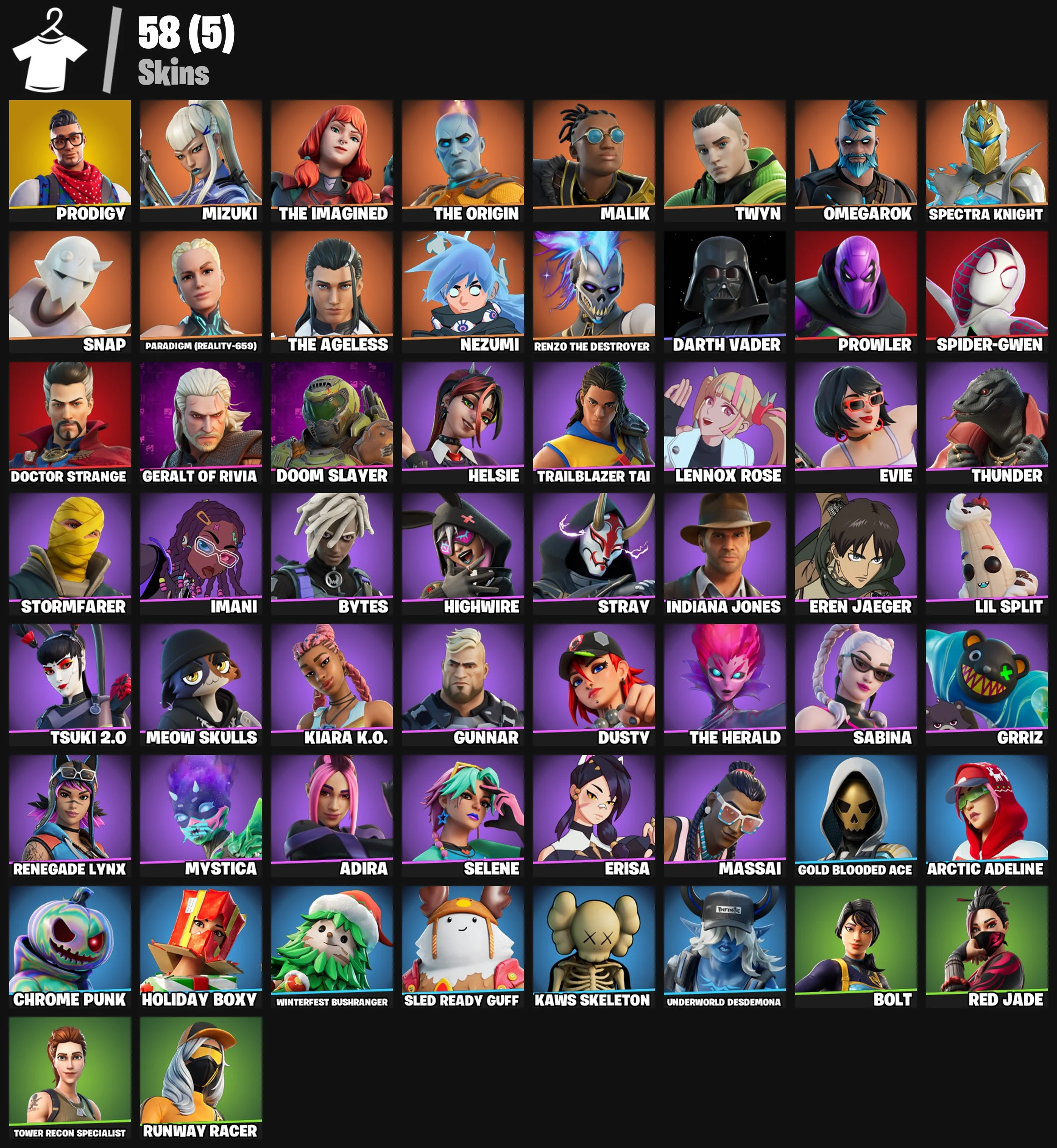 💎 【58 SKINS】 (PC/PSN/XBOX) BOLT 🎵 RED JADE 🌀 DARTH VADER 📦 INDIANA JONES 🚨 GERALT OF RIVIA 🌌 PRODIGY 🌌 MIZUKI 🧩 THE IMAGINED