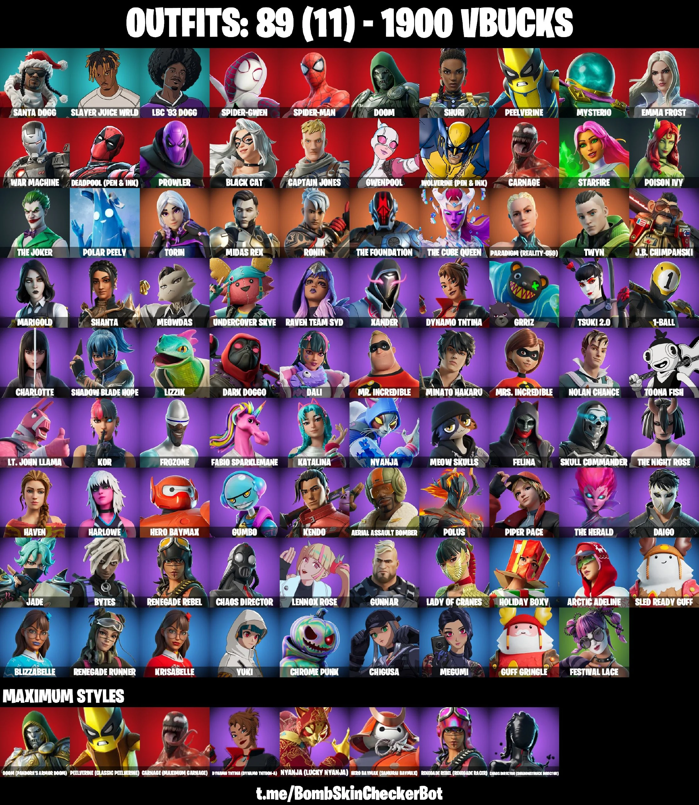89 Skins| Starfire, Wolverine Deadpool Pen and Ink, Doom, Spider Gwen, Carnage, Doom|Full Access
