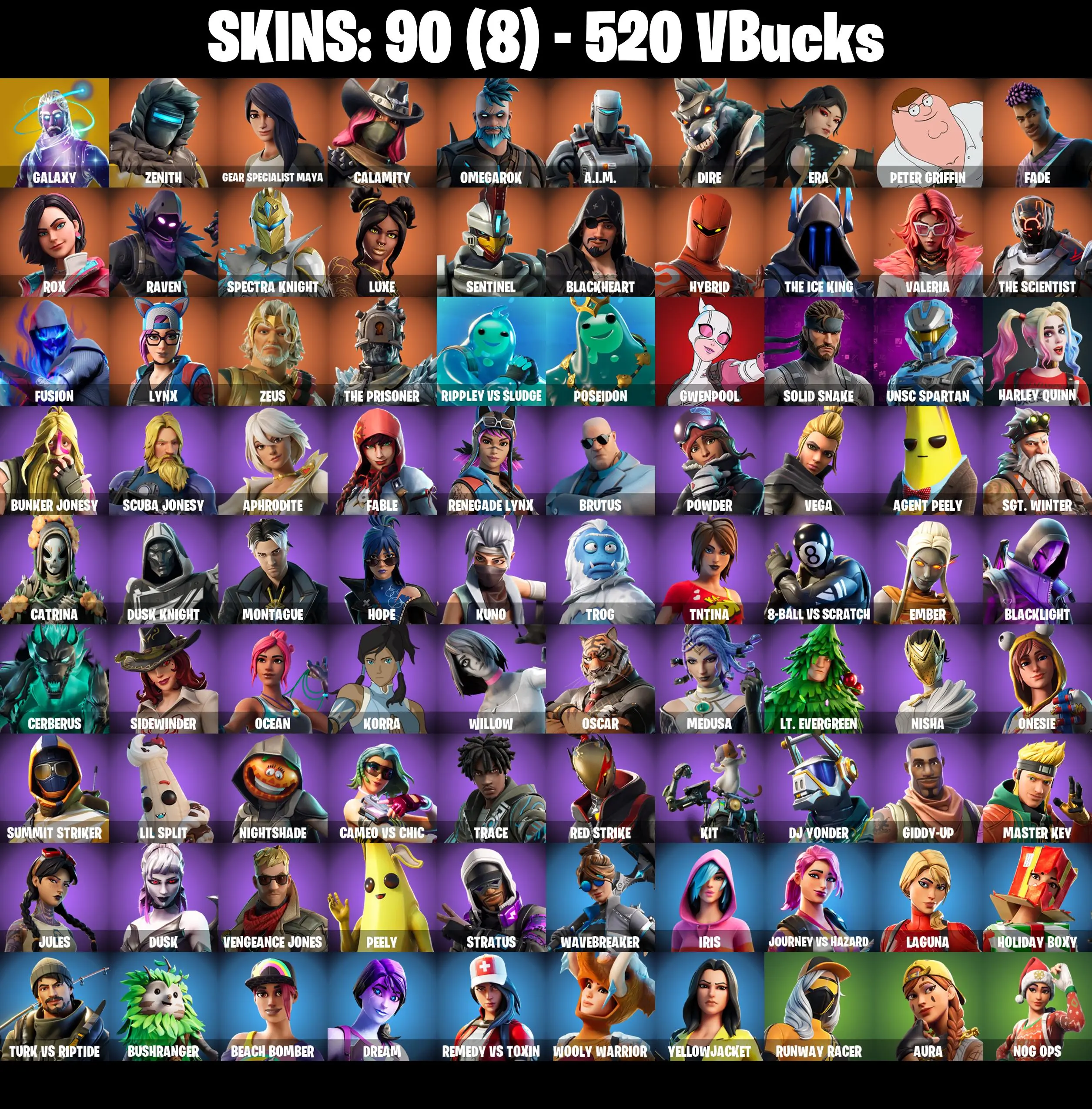 🎆90 SKINS ⚡️PC/XBOX⚡️ GALAXY 👑 ZENITH 👑 GEAR SPECIALIST MAYA 👑 CALAMITY 👑 OMEGAROK 👑 A.I.M. 👑 DIRE 👑 ERA 👑 PETER GRIFFIN 👑 FADE 👑 ROX ⚡️ 520 VB #M638