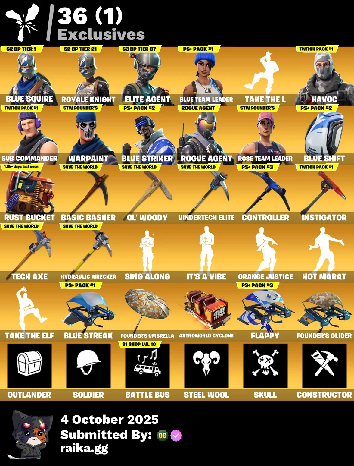 [All Platforms Linkable ] 72 skins | OG STW | Blue Squire 🌟 Royale Knight 🌟 Elite Agent 🌟 Blue Team Leader 🌟 Havoc 🌟 Sub Commander 🌟 Blue Striker 🌟 Rogue Agent 🌟 Drift