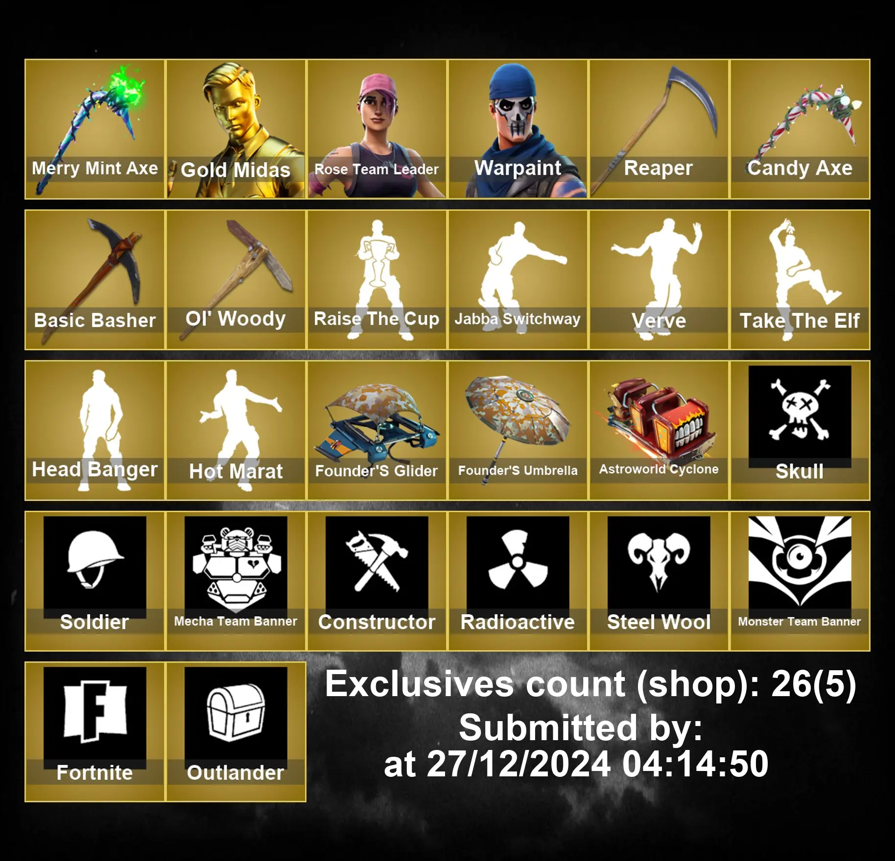 $ [PC/PSN/XBOX] 86 skins | OG STW | Merry Mint Axe | Gold Midas | Gear Specialist Maya | Menace | Hybrid | Fusion | Dire | Blackheart