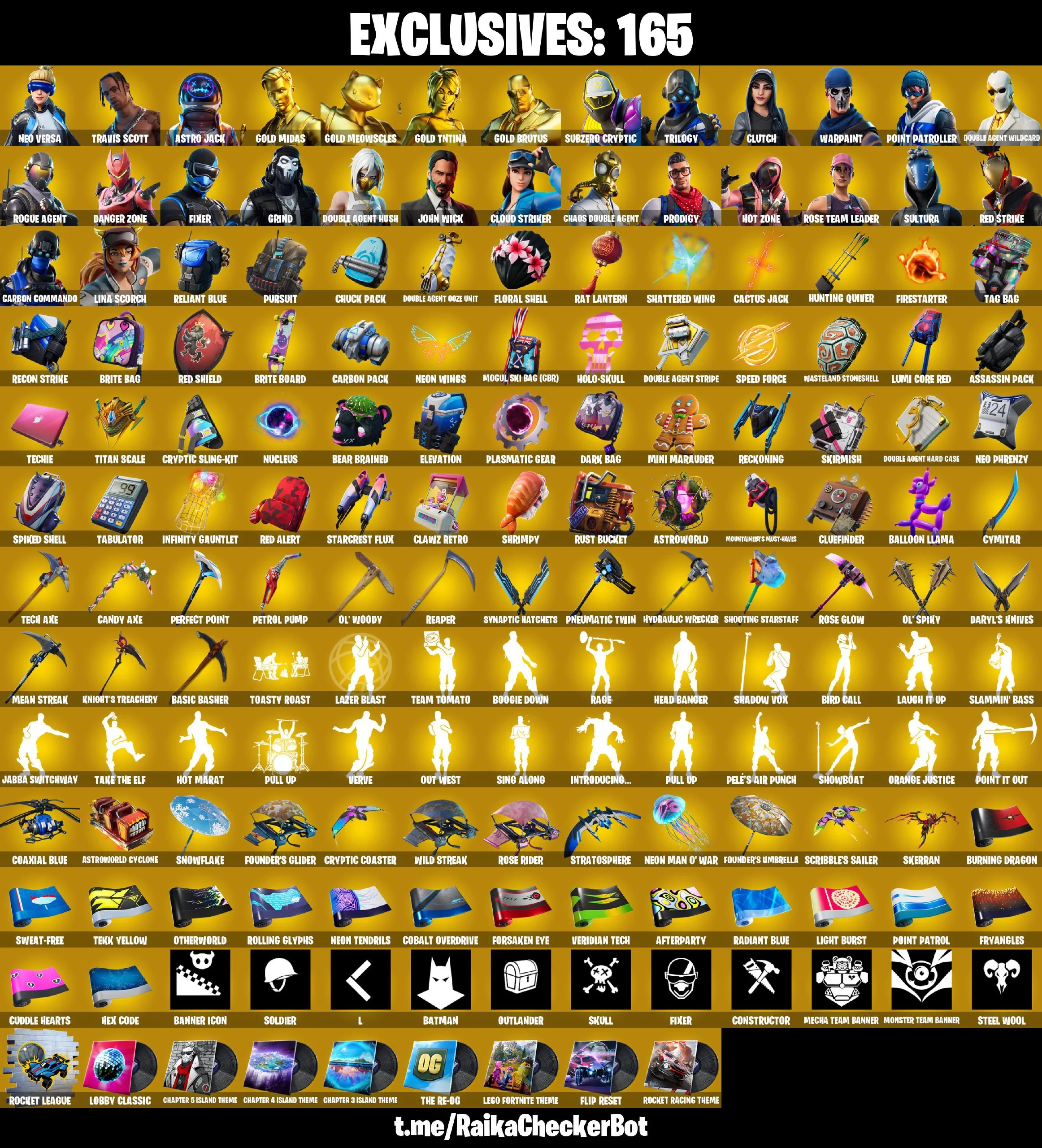🔥🧨 EXCLUSIVE ACCOUNT 🧨🔥 276 skins 💎 Travis Scott 💎 OG STW 💎 Neo Versa 💎 Astro Jack 💎 Lara Croft 💎 Focus 💎 Aura 💎 Manic 💎 Birdie 💎 Dynamo 💎 Dark Wild Card 💎 Recon Expert 💎 Nog Ops 💎 Laugh It Up 💎 Get Griddy 💎 Full Access 💎 PC\PSN\XBOX\SWITCH 💎