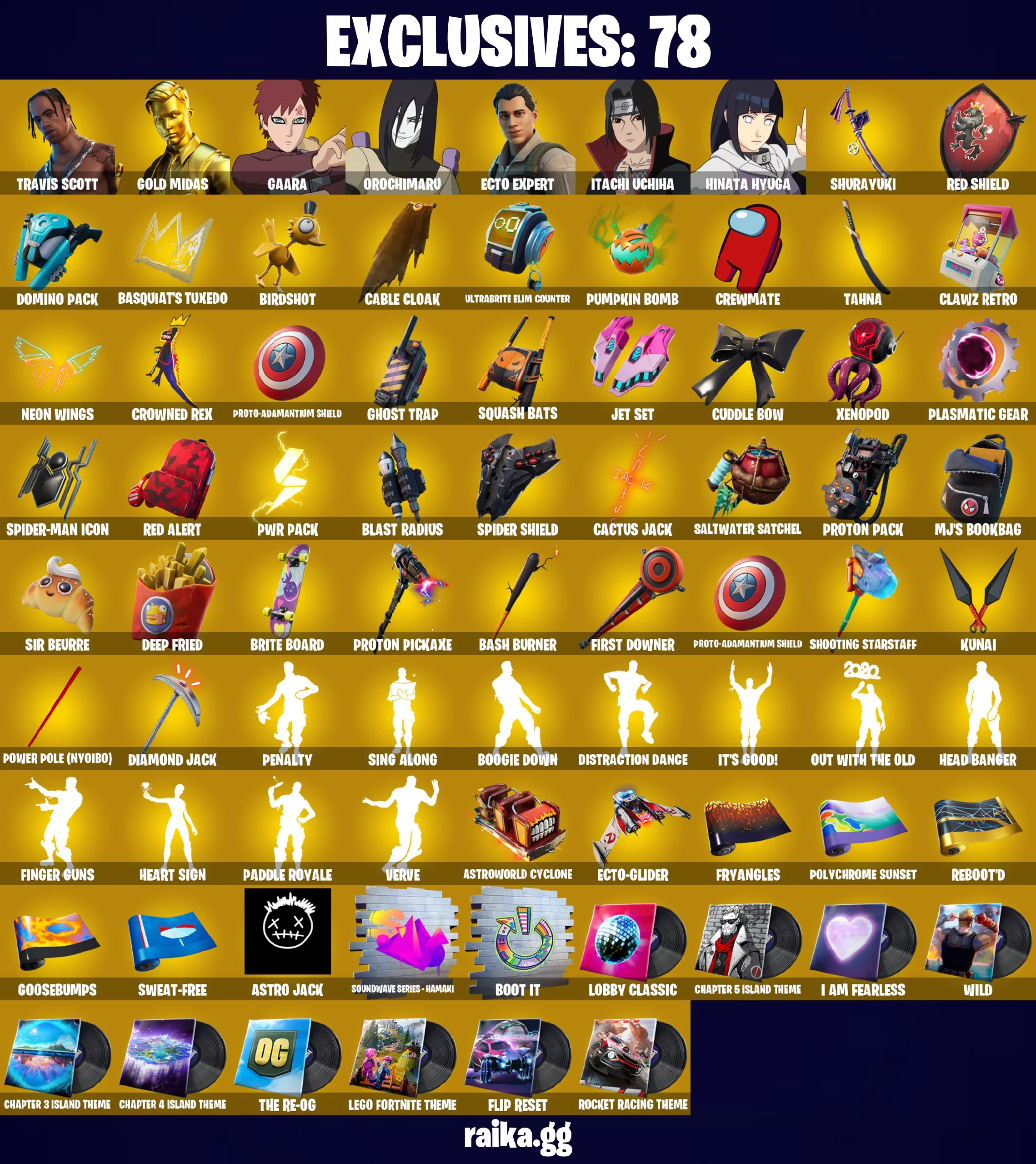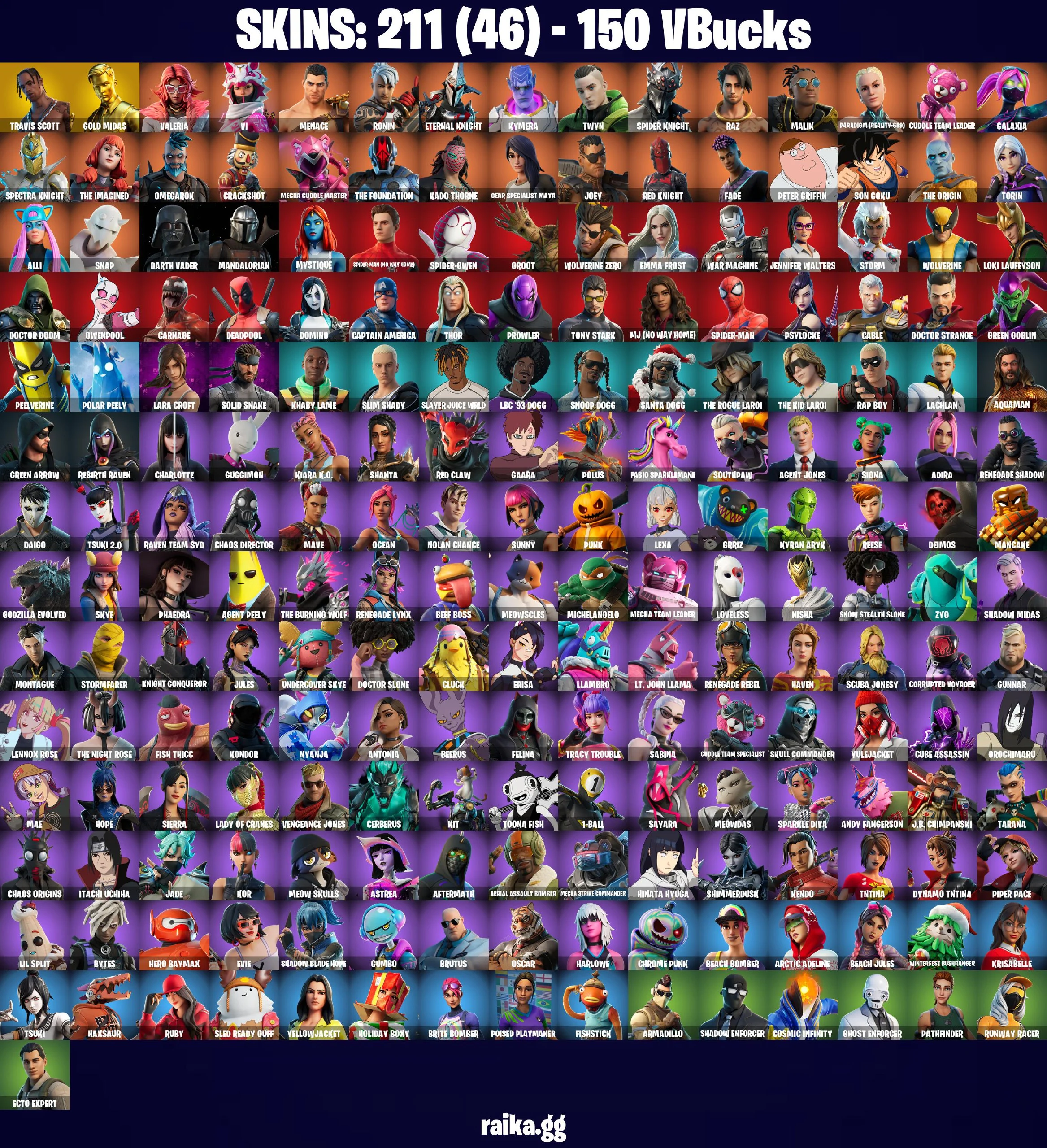🔥🧨 EXCLUSIVE OFFER 🧨🔥 211 skins 💎 Travis Scott 💎 Gold Midas 💎 Valeria 💎 Vi 💎 Menace 💎 Ronin 💎 Eternal Knight 💎 Kymera 💎 Twyn 💎 Spider Knight 💎 Raz 💎 Malik 💎 Paradigm (Reality-659) 💎 Cuddle Team Leader 💎 PC\PSN\XBOX\SWITCH 💎