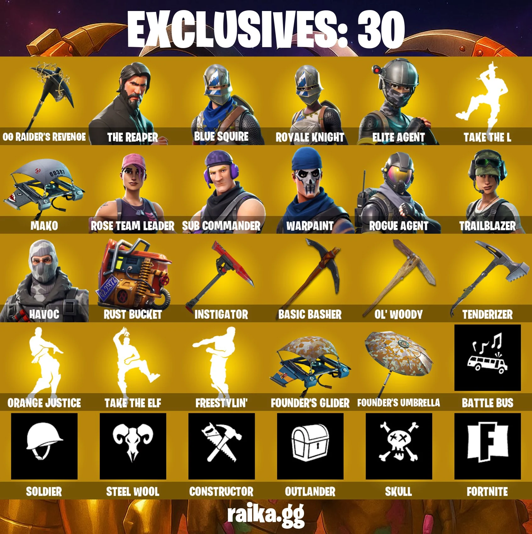 💥🌟💥 EXCLUSIVE OFFER 💥🌟💥 75 SKINS 💎 OG RAIDERS REVENGE 💎 THE REAPER 💎 TAKE THE L 💎 ROYALE KNIGHT 💎 ELITE AGENT 💎 FREESTYLIN 💎 ROGUE AGENT 💎 TRAILBLAZER 💎 HAVOC 💎 DARK VOYAGER 💎 FULL ACCESS  💰 1150 VB