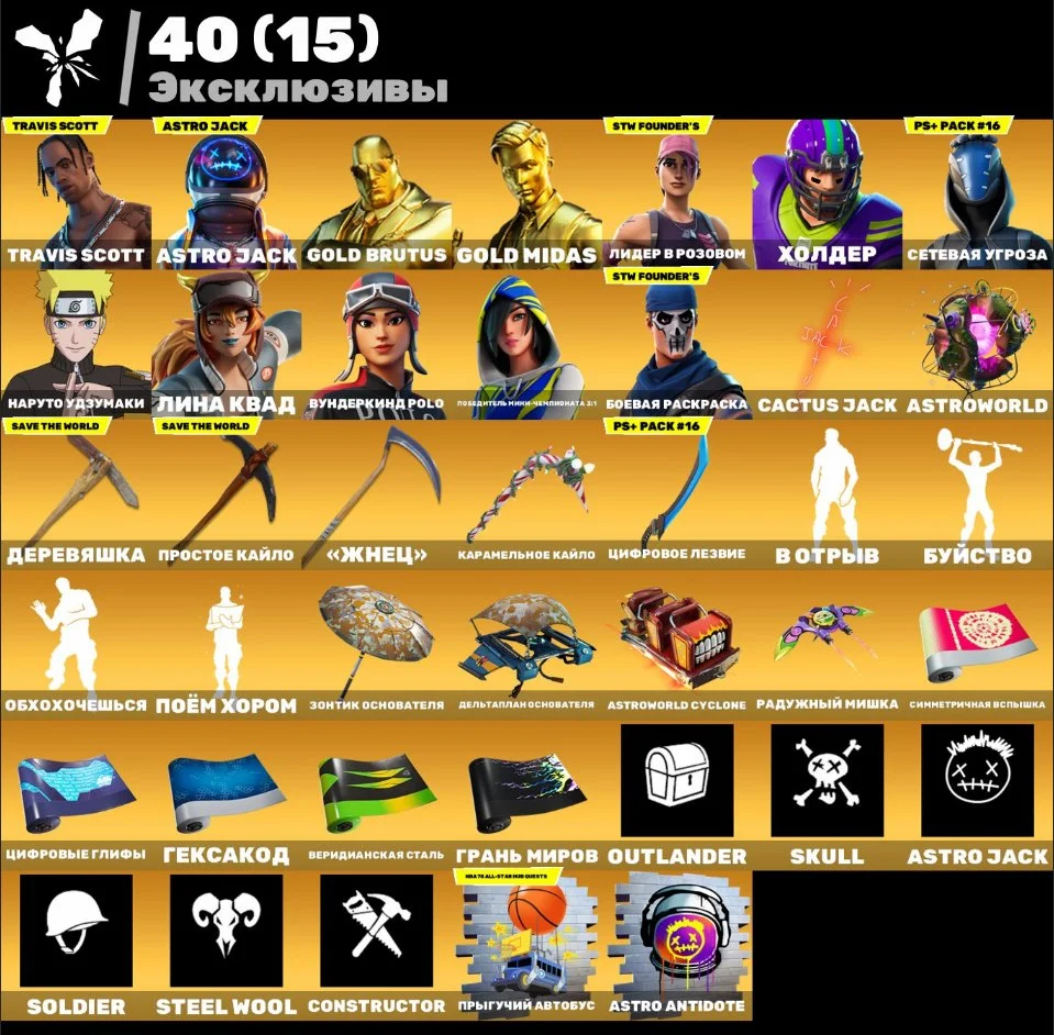 F771 // 147 SKINS // PVE // TRAVIS SCOTT // POLO PRODIGY // KYLO // NARUTO // HOLDER // ASTRO JACK // BREAK AWAY
