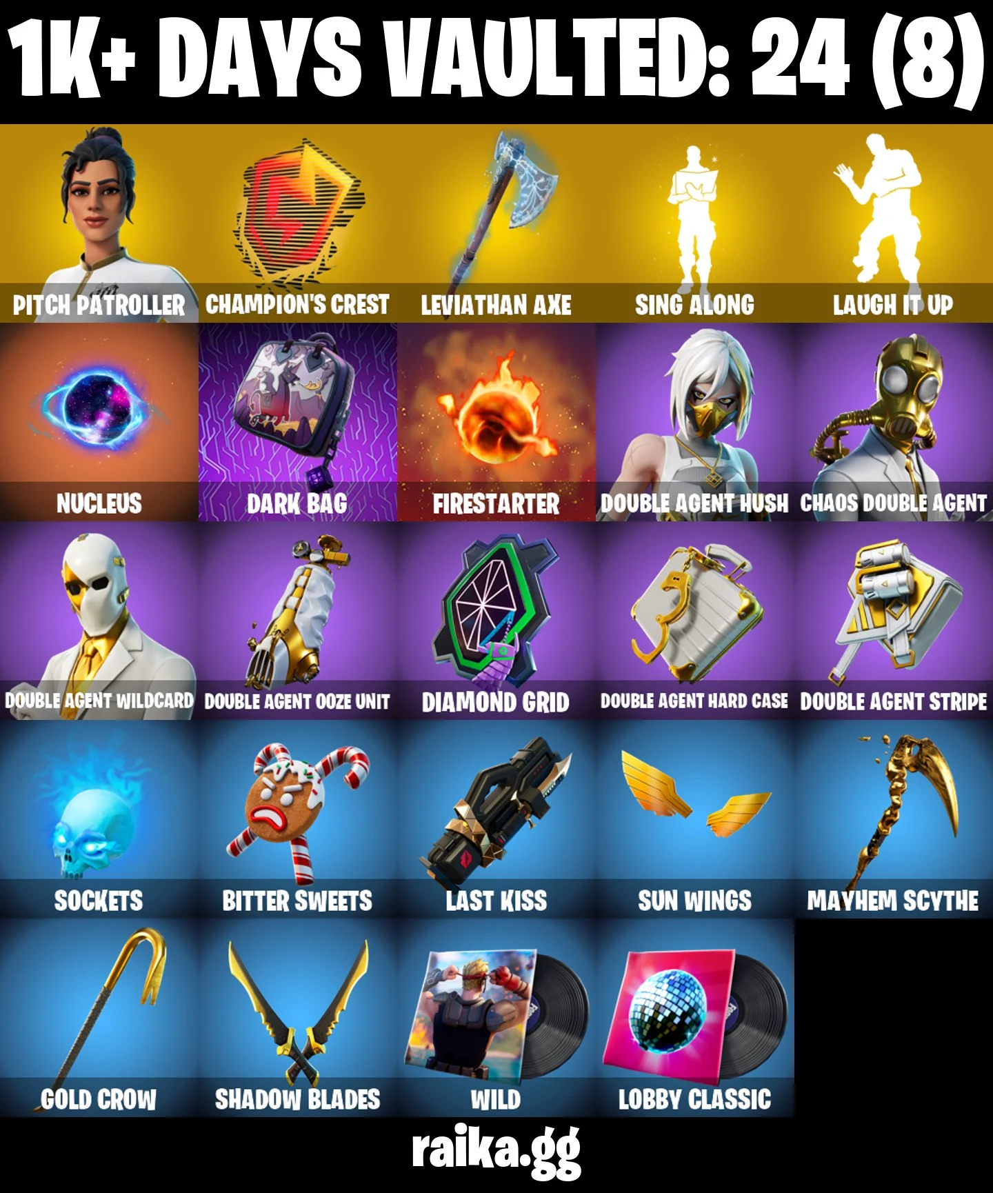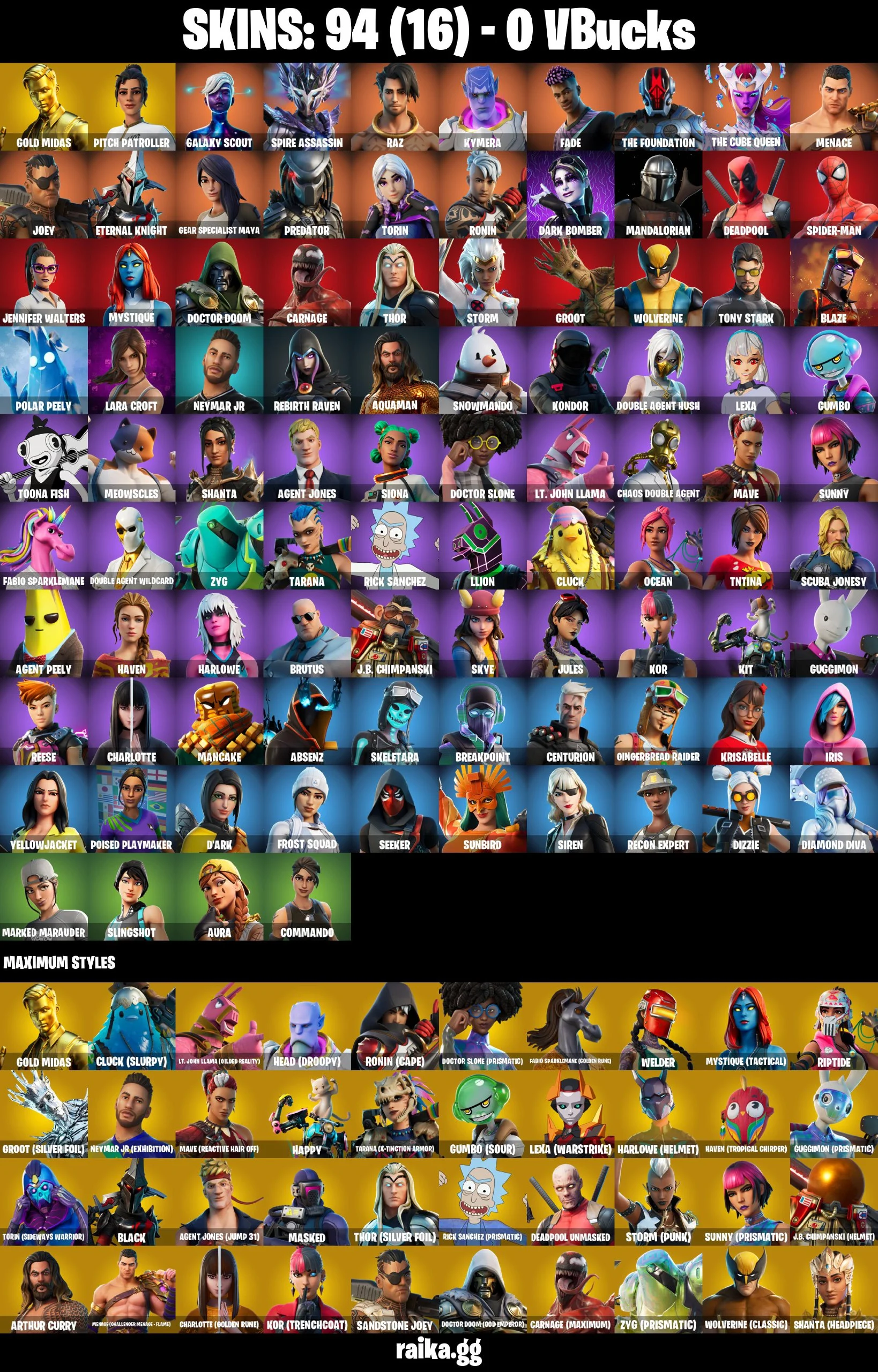 ⭐ Inactive for 3 years | PC/PSN/XBOX | 94 skins | leviathan axe | electric claw | Gold Midas | Pitch Patroller | Galaxy Scout | Spire Assassin | Raz | Kymera | Fade | The Foundation | The Cube Queen | Menace | Joey | 0 VB