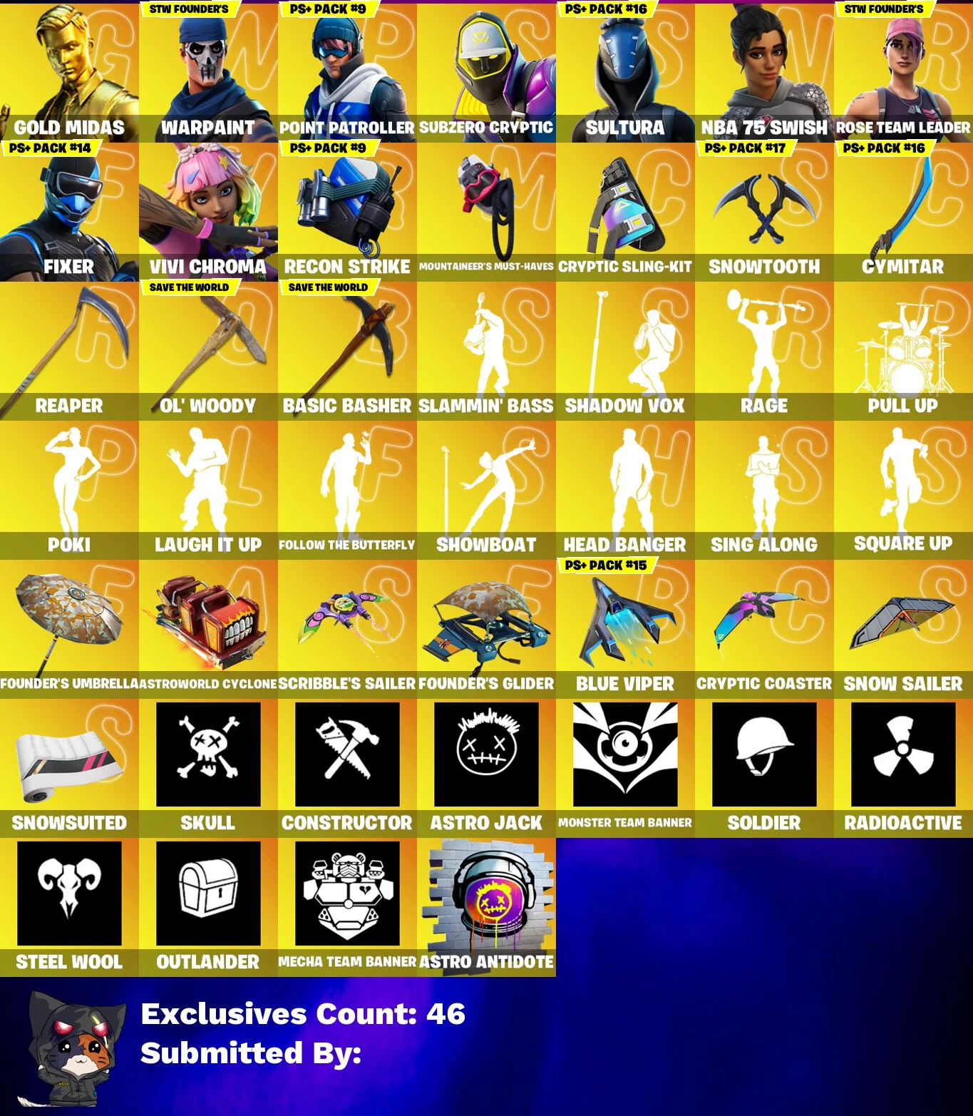 💥🌟 LIMITED OFFER 🌟💥 107 SKINS 💎 Gold Midas 💎 Point Patroller 💎 Subzero Cryptic 💎 Sultura 💎 NBA 75 Swish 💎 Fixer 💎 Vivi Chroma 💎 Gear Specialist Maya 💎 Backlash 💎 Catalyst 💎 The Origin 💎 OG STW 💎 FULL ACCESS 💎
