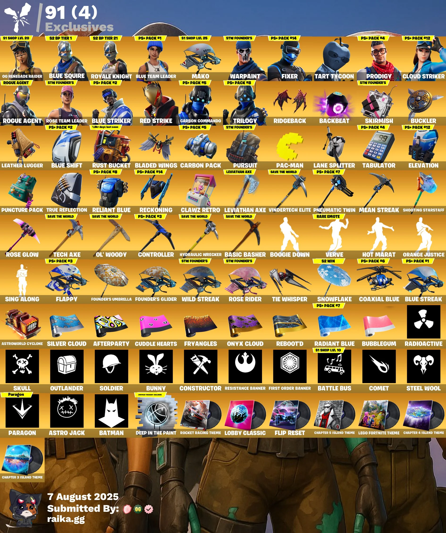 💥🌟💥 OG 💥🌟💥 96 SKINS 💎 OG RENEGADE RAIDER 💎 LEVIATHAN AXE 💎 ROYALE KNIGHT 💎 XOXO 💎 GOOD GUY 💎 DEEP END 💎 MEAN STREAK 💎 THE WORM 💎 SNOWSHAKER 💎 FULL ACCESS