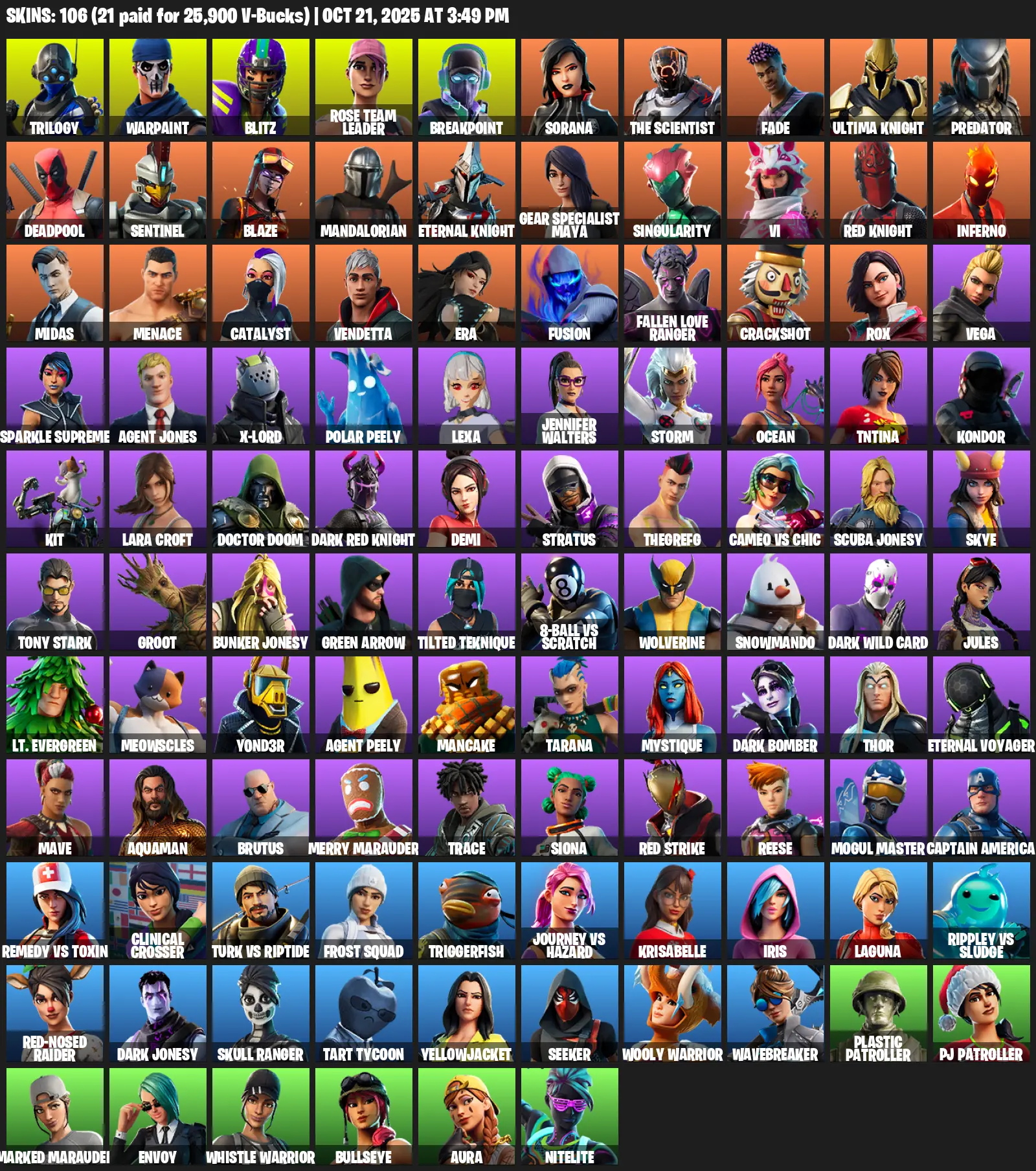[PC] | 106 skins | 1000 V-bucks | OG STW | Lara Croft | Reaper Axe | Trilogy | Warpaint | Blitz | Rose Team Leader | Breakpoint | Sorana | S4G