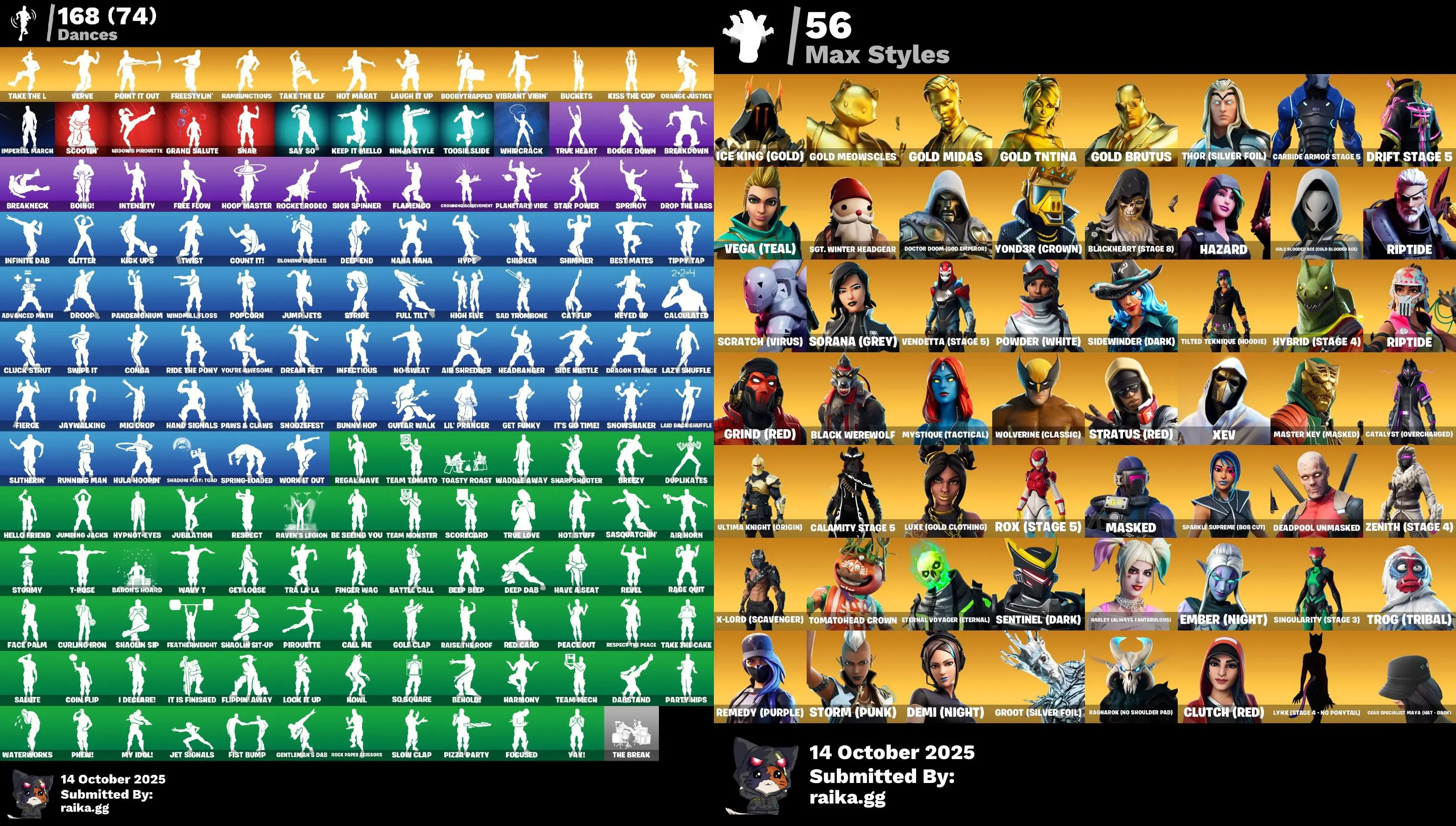 [PC] 204 skins | Neo Versa | Gold Meowscles | Gold Midas | Gold TNTina | Gold Brutus | Havoc | Trailblazer| Merry Mint Axe | Take The L| Hot Marat M178