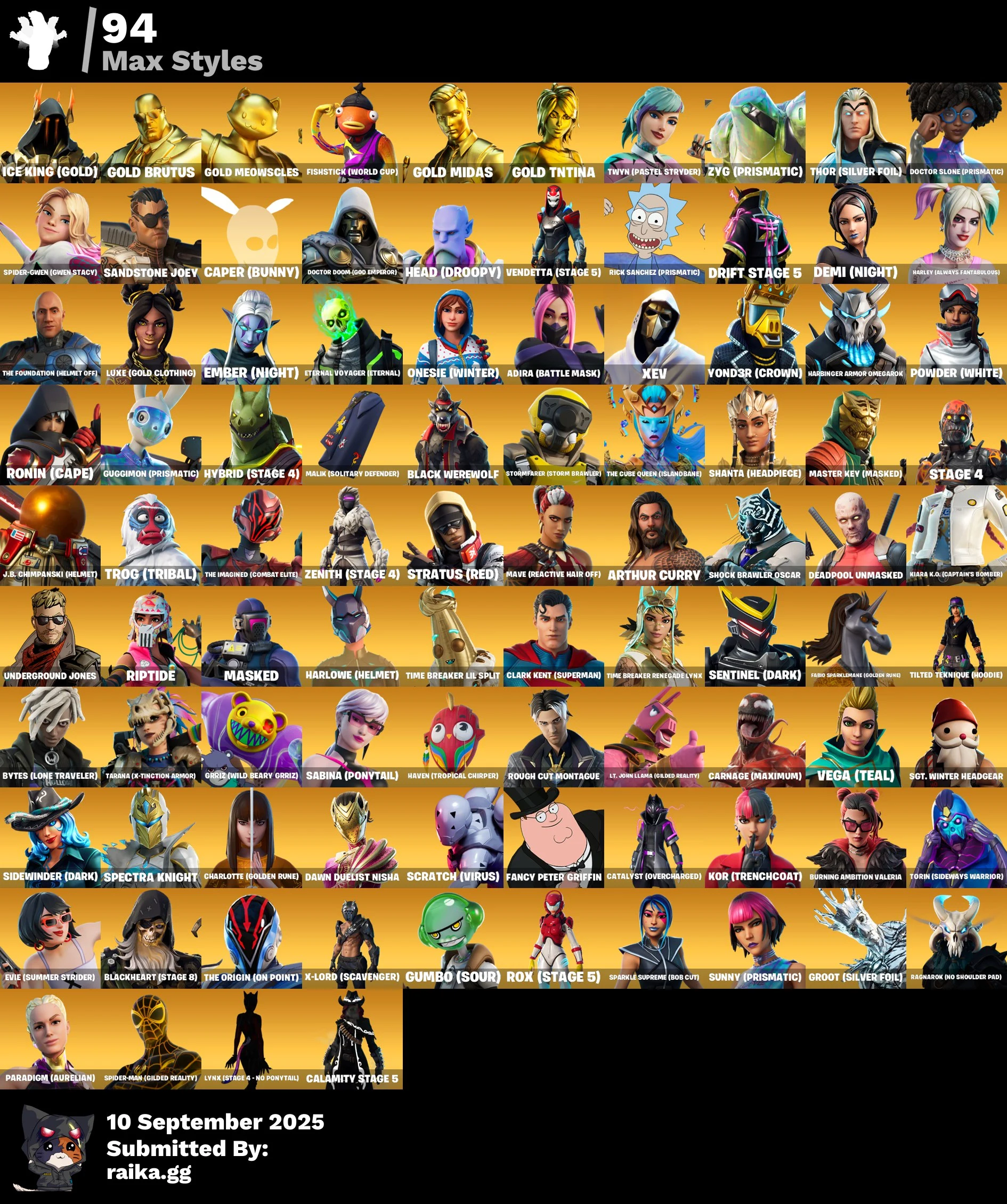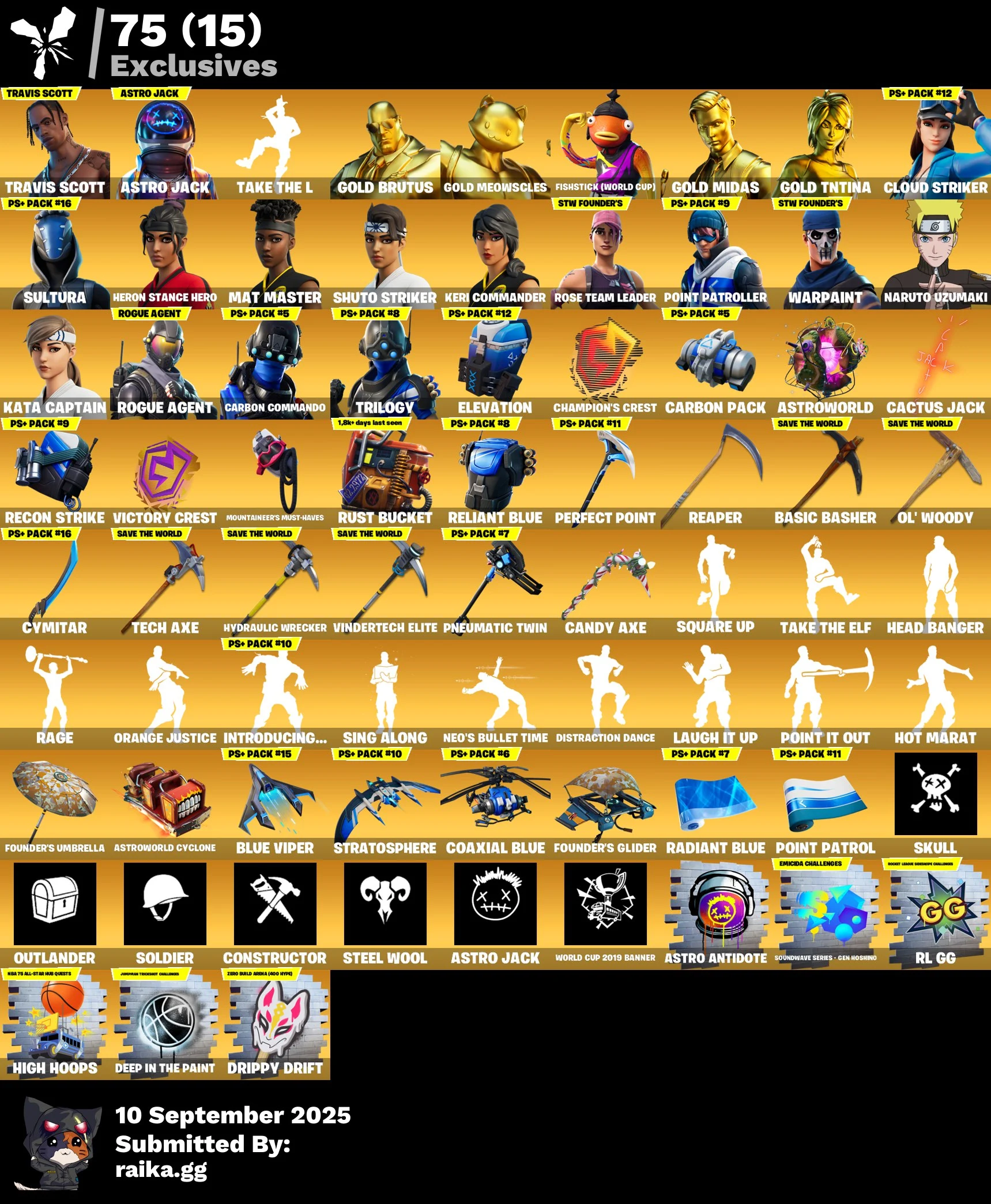 [PC | PSN | XBOX] 273 skins | OG STW | Travis Scott | Astro Jack | Fishstick (World Cup) | Candy Axe | Gold Brutus | Gold Meowscles| Gold Midas | Gold TNTina | Cloud Striker | 210 VB