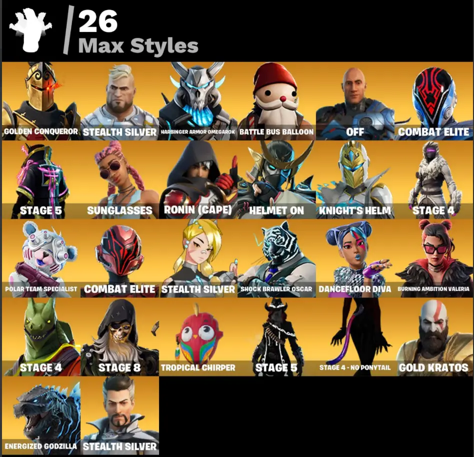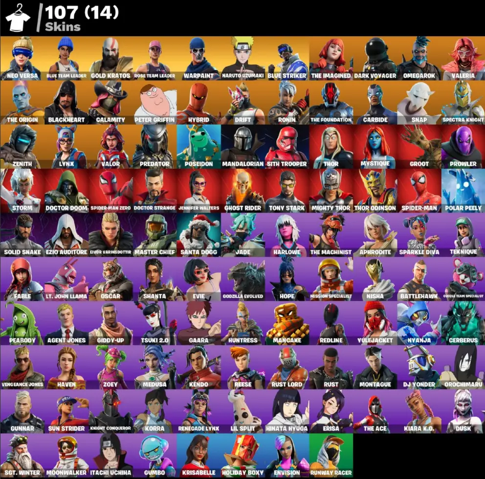 (PC PSN XBOX) 107 SKINS / LEVIATHAN AXE / FA / GOLD KRATOS / HINATA HYUGA / ITACHI UCHIHA / GAARA / OROCHIMARU / NARUTO UZUMAKI / OG STW / take the l