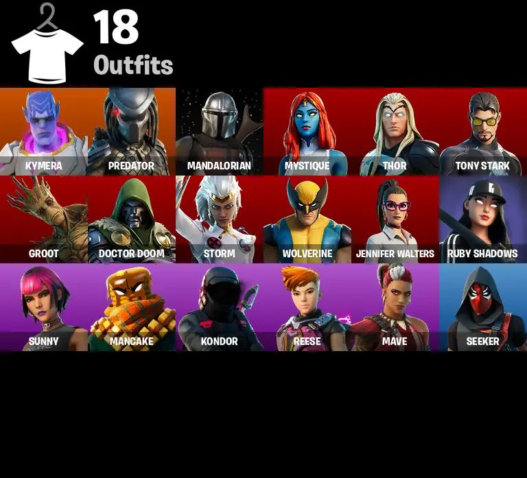 【PC/NS/XBOX/PSN】 18 skins 🔥 Kymera 🔥 Predator 🔥 Mandalorian 🔥 Mystique 🔥 Doctor Doom 🔥 Thor 🔥 Storm 🔥 Groot 🔥 Tony Stark 🔥 250 VB