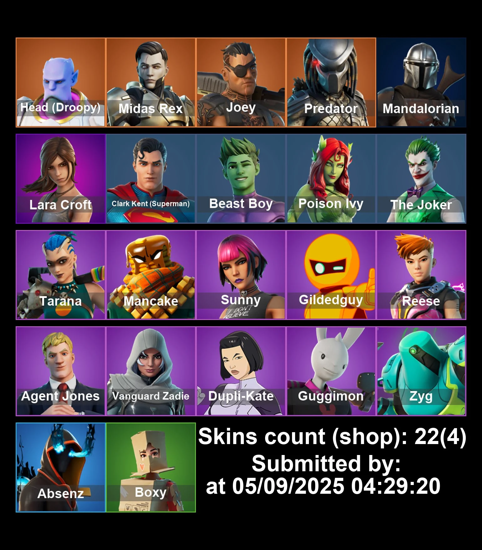 [PC/PS4-5/XBOX] 22 skins | Head (Droopy) | Midas Rex | Joey | Predator | Mandalorian | Lara Croft | Clark Kent (Superman) | Beast Boy | Poison Ivy | The Joker | Full Email Access