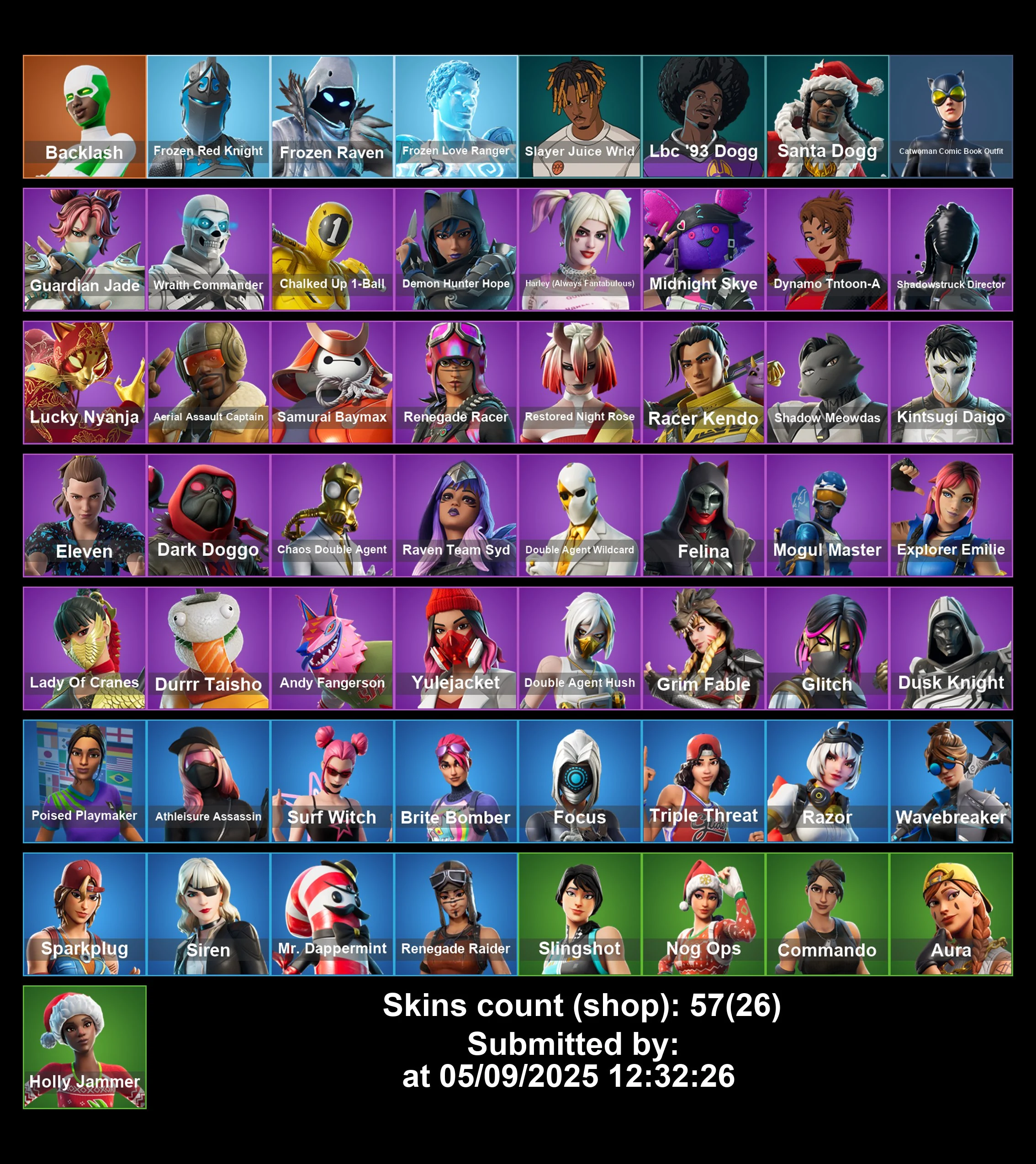 [PC/PS4-5/XBOX] 57 skins | Renegade Raider | Backlash | Frozen Red Knight | Frozen Raven | Frozen Love Ranger | Slayer Juice WRLD | LBC '93 Dogg | Santa Dogg | Full Email Access