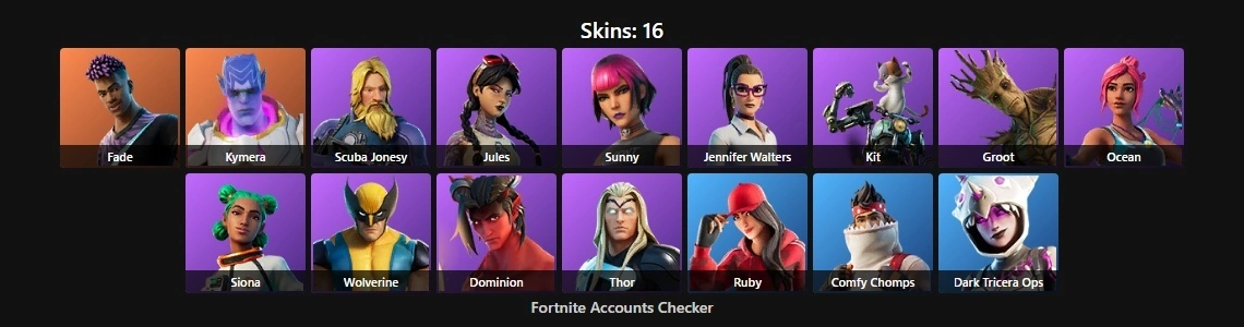 PC/PSN 16 Skins⚡ | Fade | Kymera | Scuba Jonesy | Jules | Sunny | Jennifer Walters | Kit | Groot | Ocean | Siona | Wolverine | Dominion | Thor | Ruby
