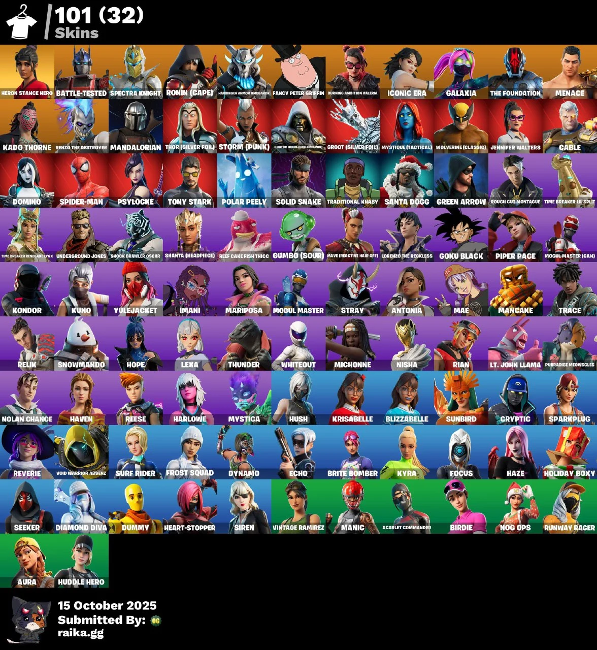 [PC/PSN/XBOX] 101 skins | Leviathan Axe | Aura | Candy Axe | Tony Stark | Siren | Dynamo | Galaxia | Star Wand lai349