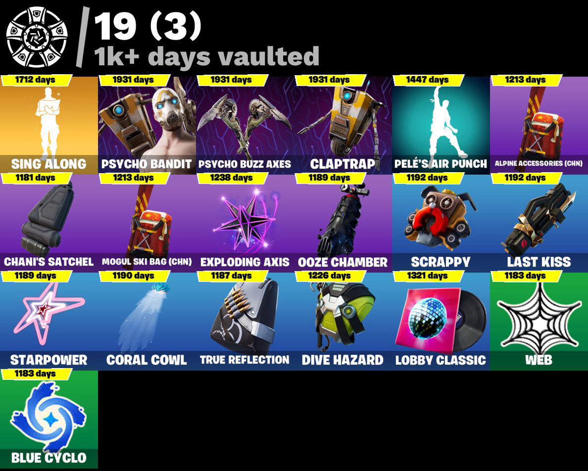 PC,PSN,XBOX 109 SKINS FA ⸱ PSYCHO BANDIT ⸱ POLARITY ⸱ TATSUO ⸱ VANGUARD ZADIE ⸱ CHANI ⸱ SNOOP DOGG ⸱ HANA ⸱ PJ ⸱ SURF WITCH RK015