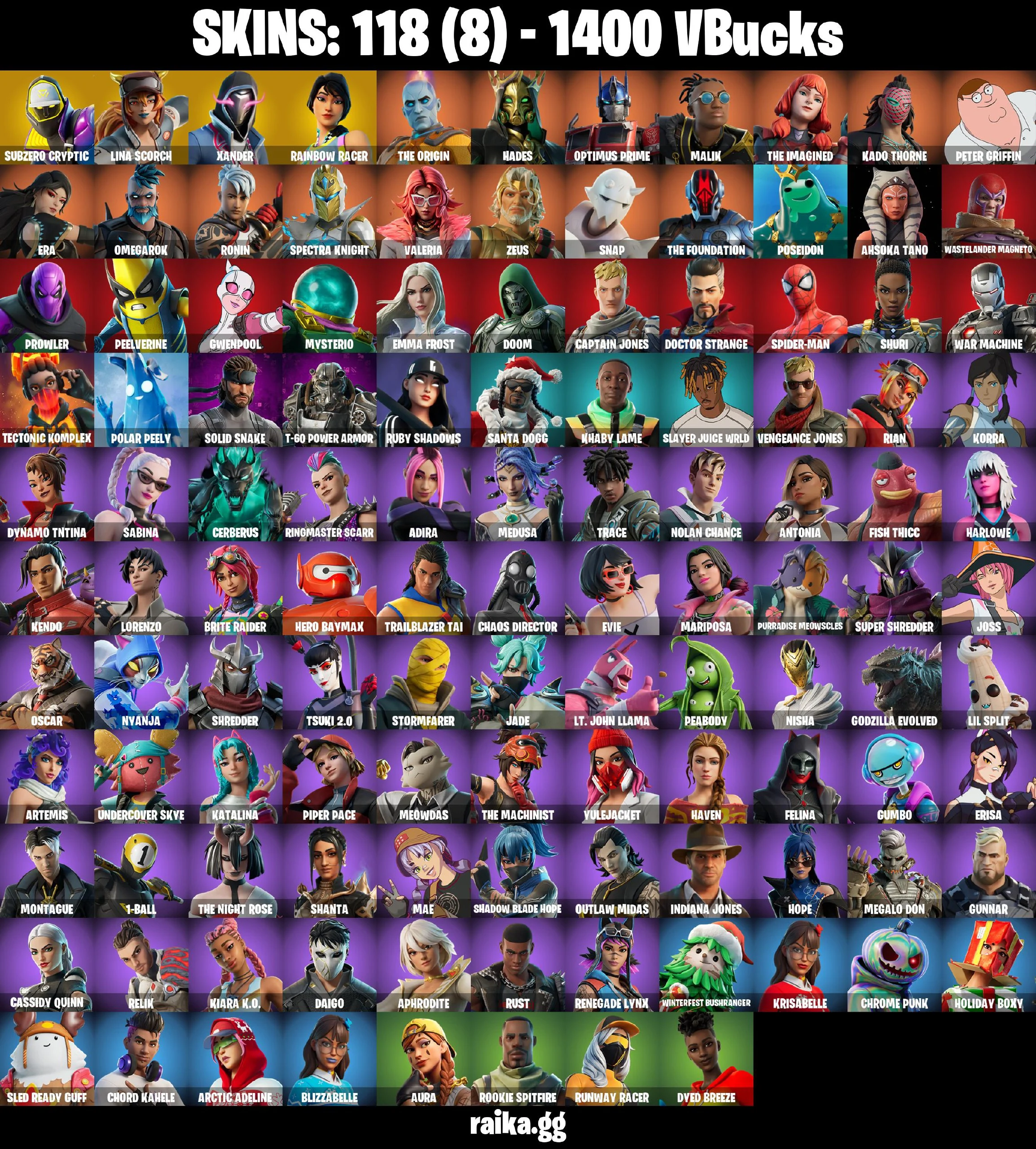[PC/PSN/XBOX] 118 skins | Subzero Cryptic | Lina Scorch | Xander | Rainbow Racer | The Origin | Hades | Optimus Prime | Malik | The Imagined | Kado Thorne | 1400 VB