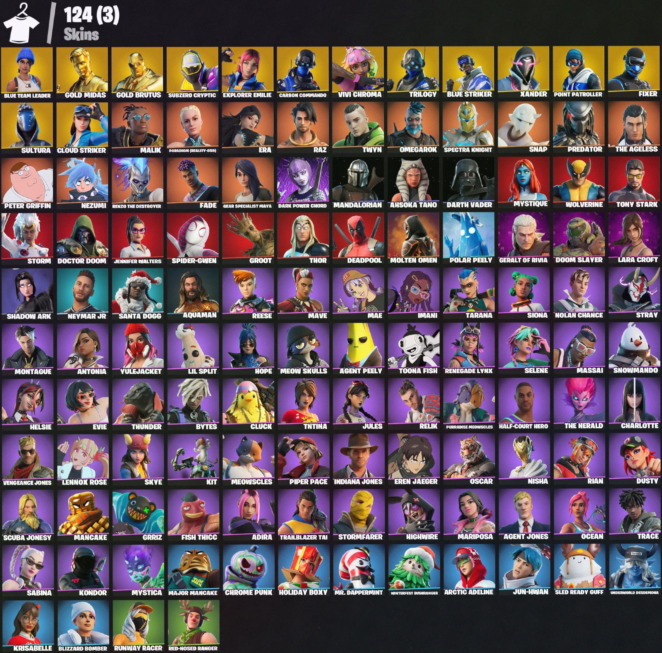 [PC/PSN/XBOX] 124 skins+Blue Team Leader+Gold Midas+Gold Brutus+Subzero Cryptic+Explorer Emilie+200 VB #LOT-165524