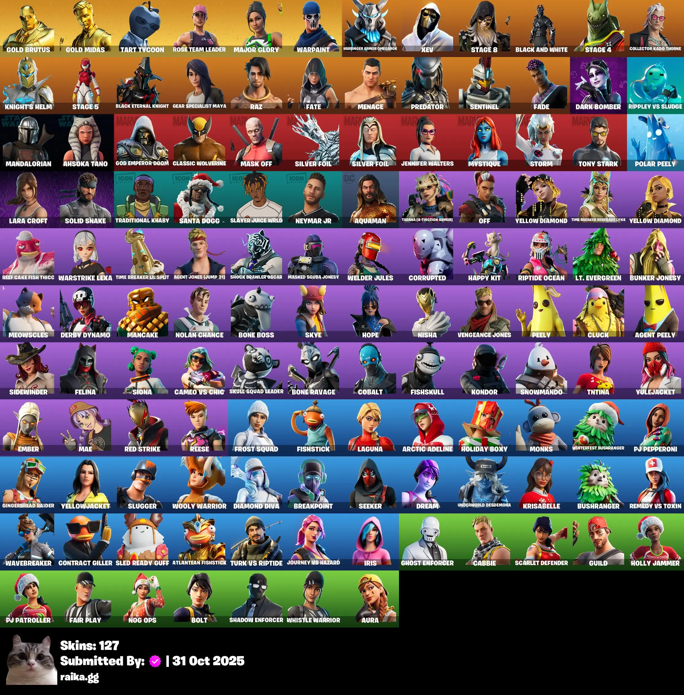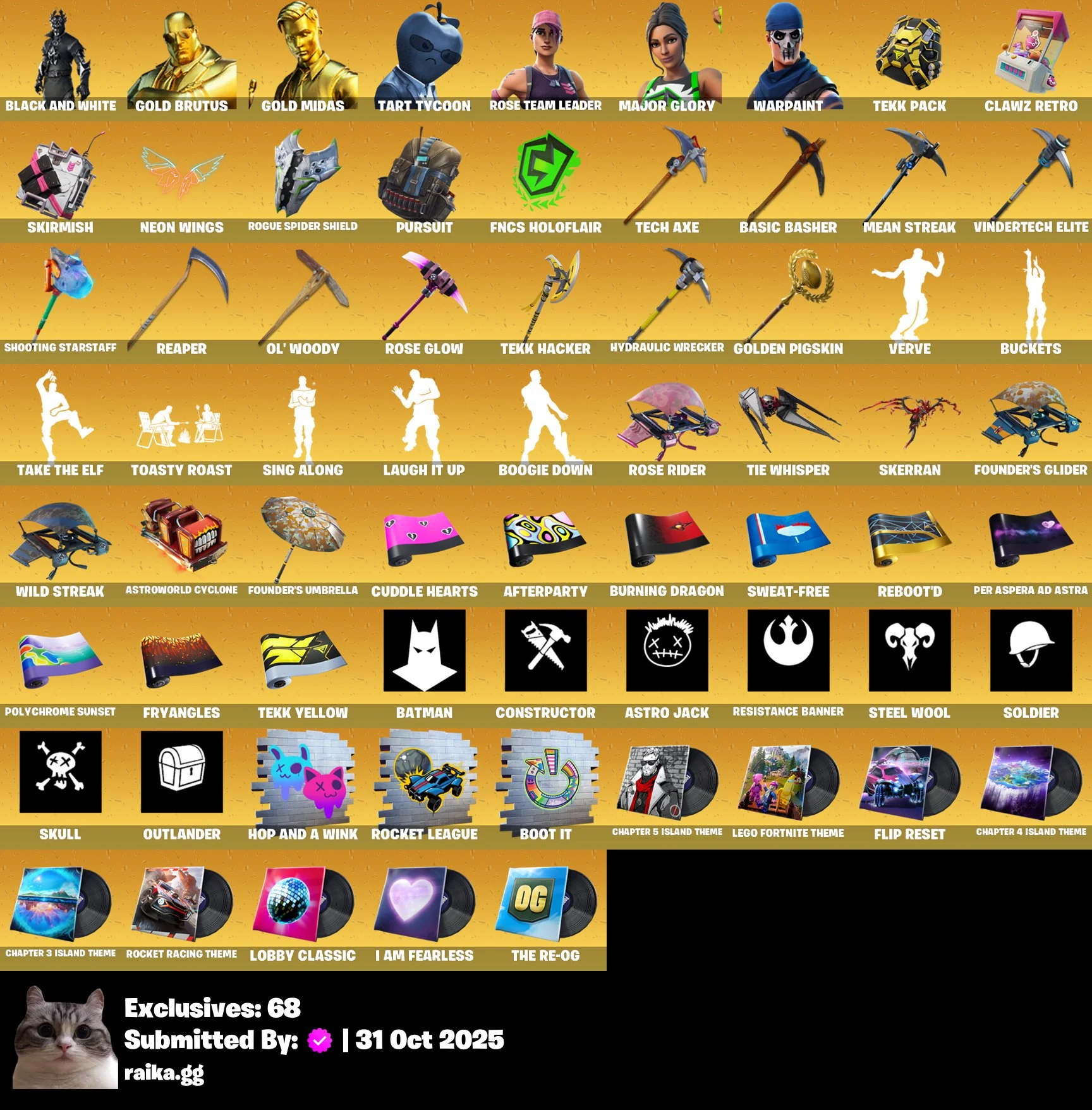 [PC/PSN/XBOX] 127 skins | OG STW | Rogue Spider Knight | Gold Brutus | Gold Midas | Tart Tycoon | Major Glory | Harbinger Armor Omegarok | XEV | STAGE 8 | BLACK AND WHITE |