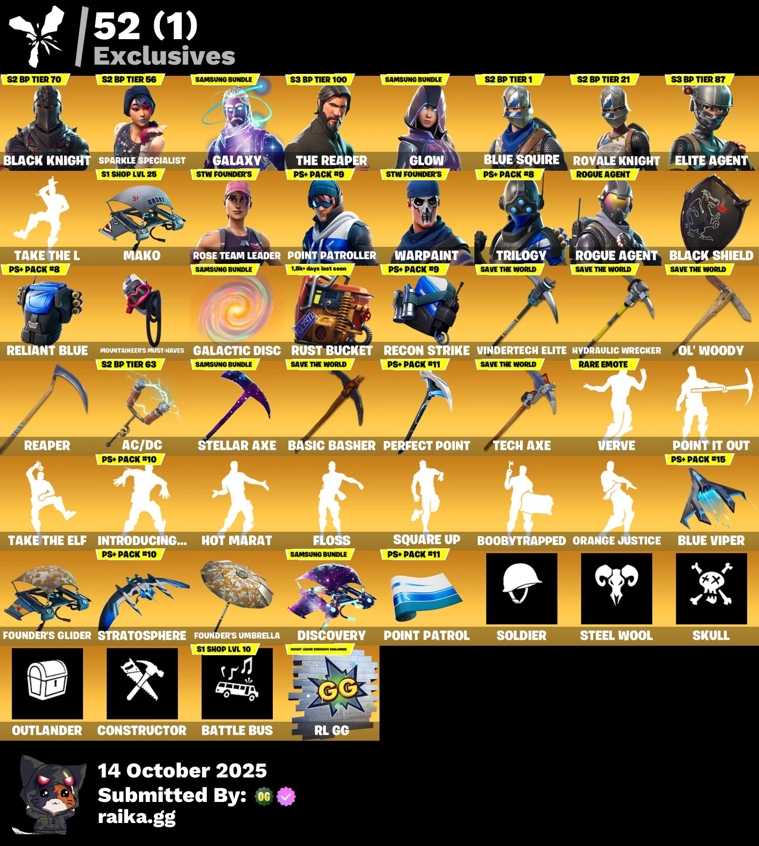 [PC/PSN/XBOX] 143 skins| Black Knight | Galaxy | The Reaper | Glow | OG STW | Blue Squire | Royale Knight | Elite Agent | Point Patroller | 600 VB