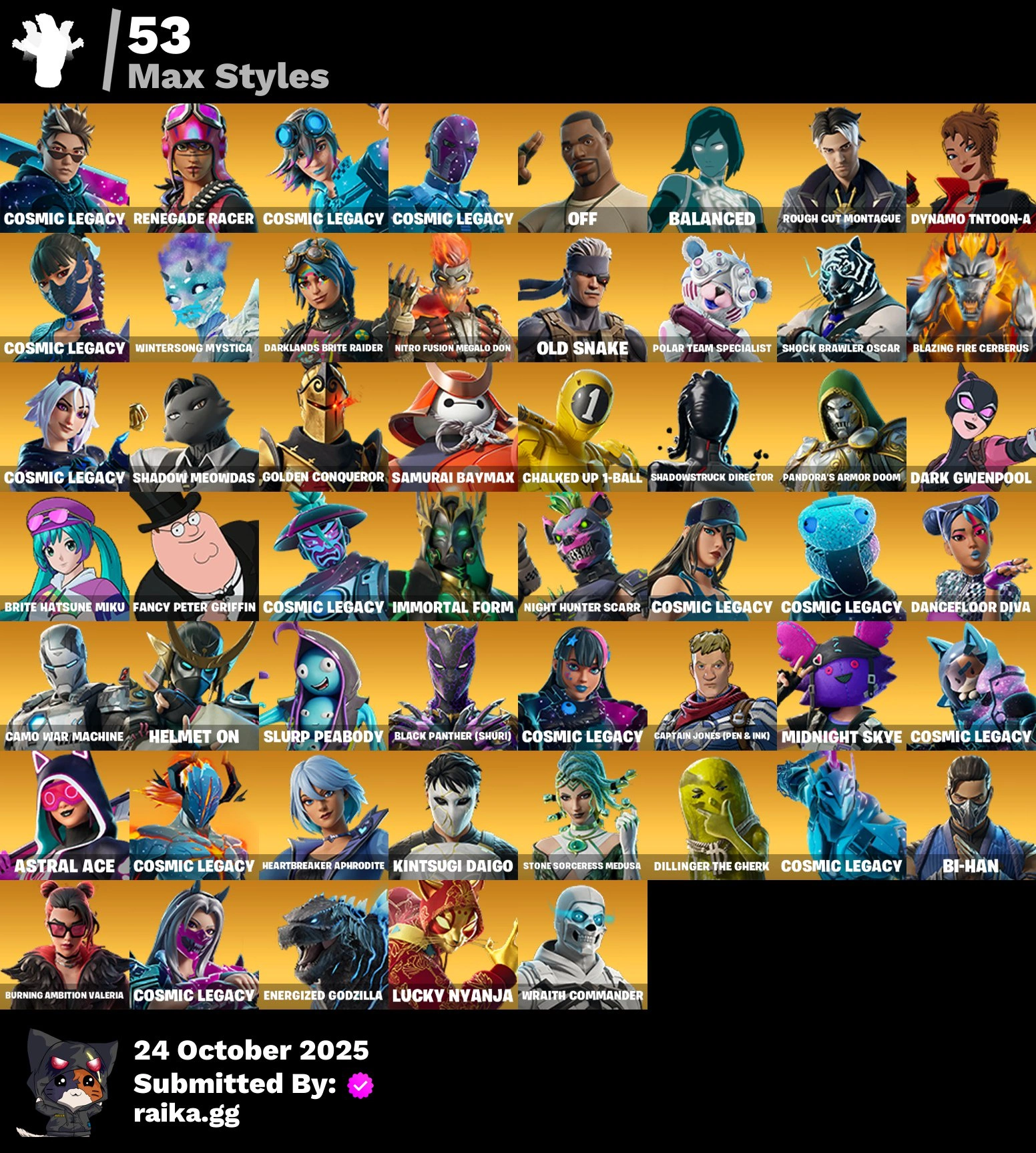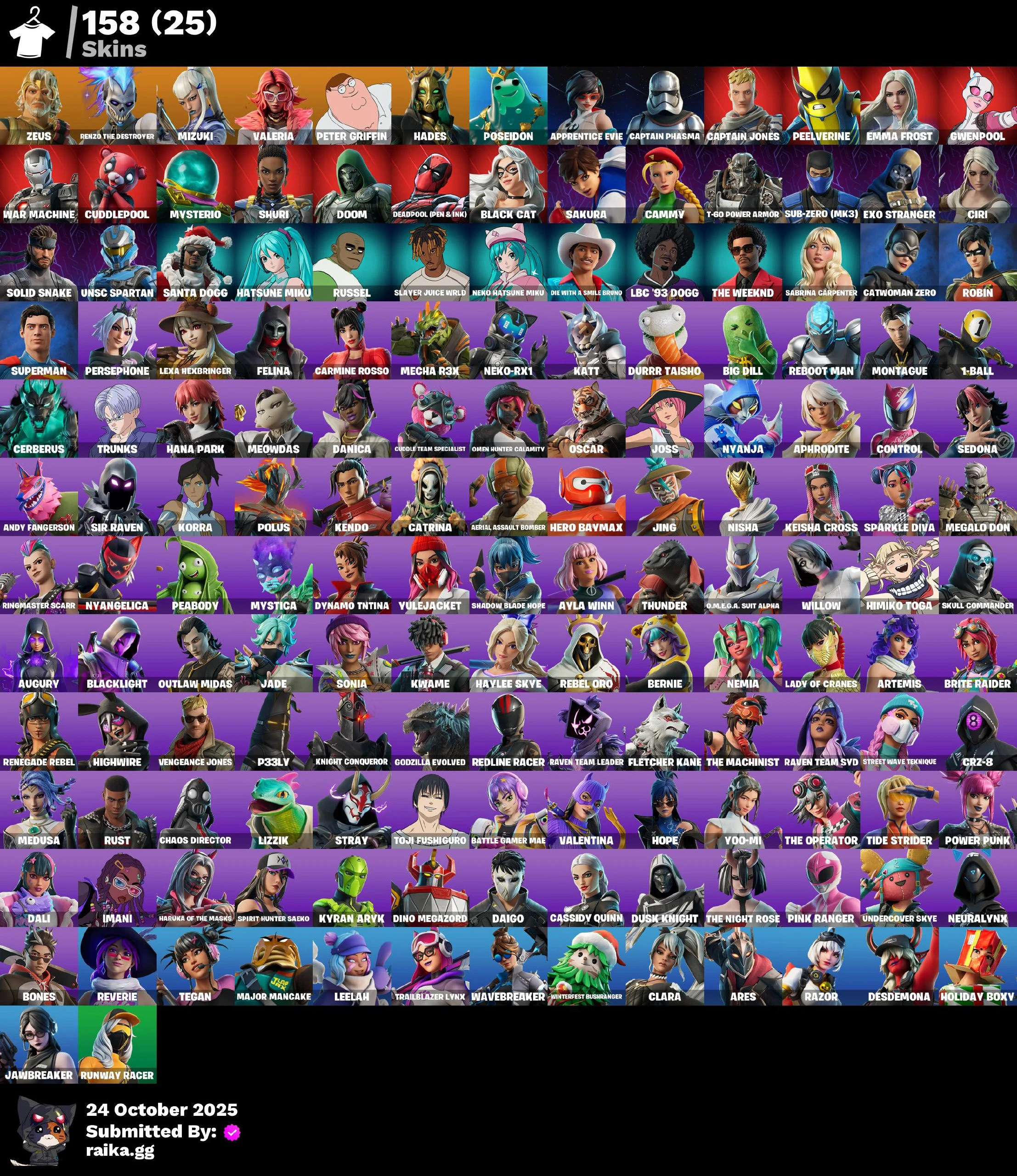 [PC/PSN/XBOX] 158 skins | Zeus | Renzo the Destroyer | Mizuki | Valeria | Peter Griffin | Hades | Poseidon | Apprentice Evie | Captain Phasma | 1050 VB